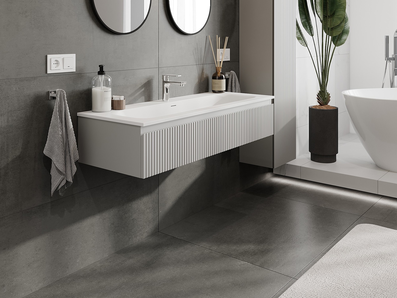 Mexen Rivel meuble de salle de bain 120 cm avec vasque Vela, 1 tiroir, rainuré, gris mat/blanc mat - 91A20-12023-1-BF62-W23M01