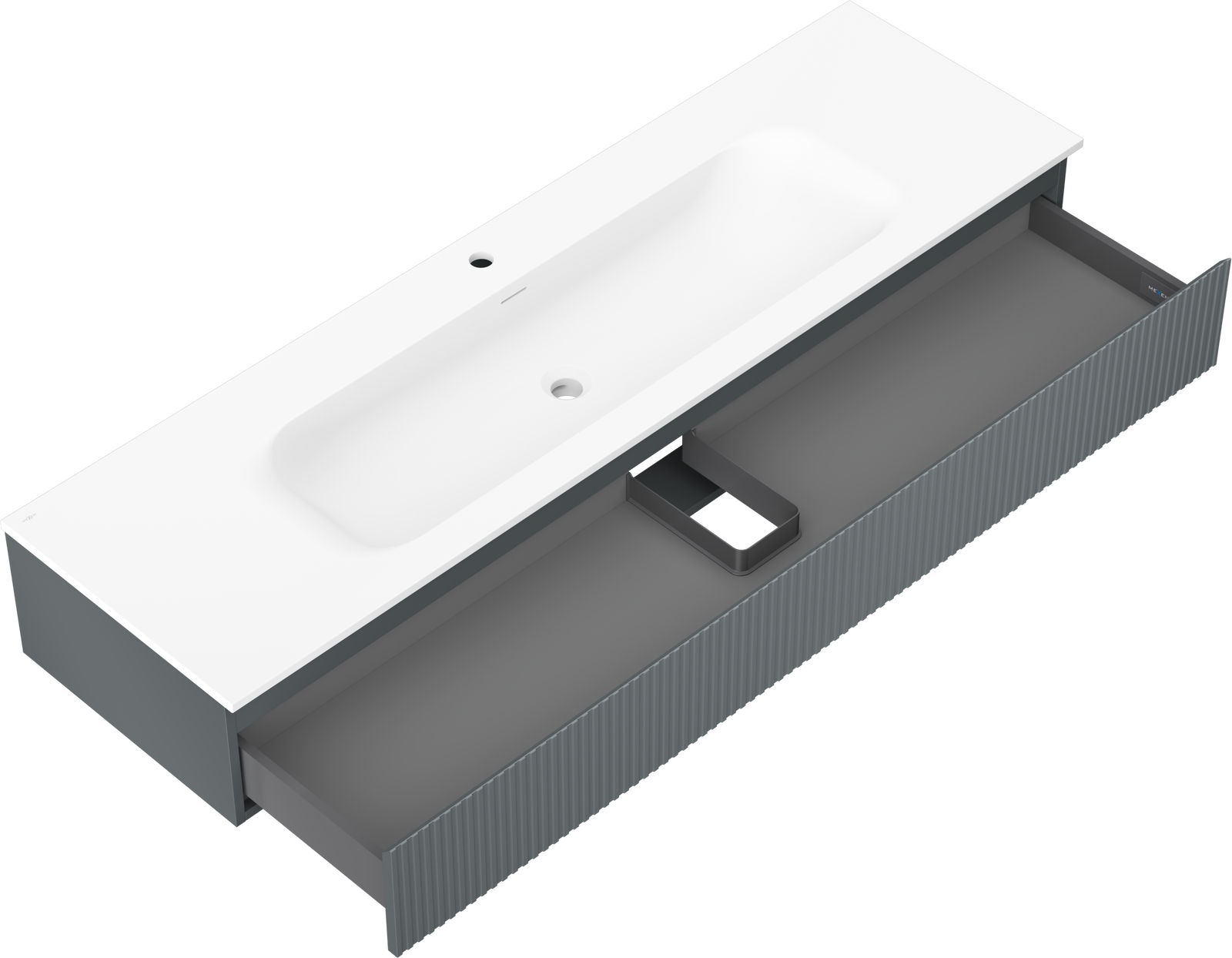 Mexen Rivel armoire de salle de bains 160 cm avec lavabo Vela, 1 tiroir, rainurée, graphite mat/blanc mat -