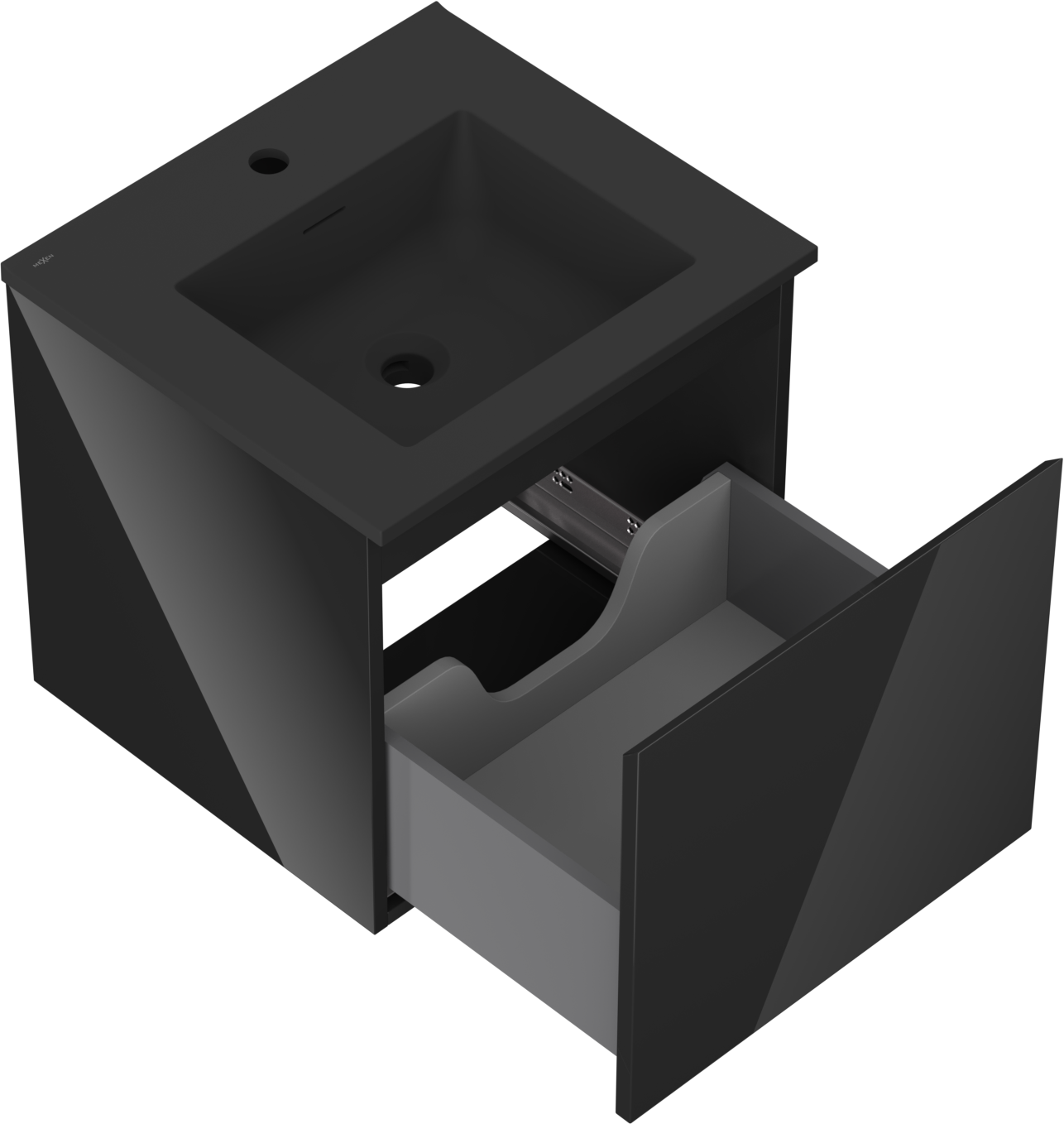 Mexen Orio meuble de salle de bain 50 cm avec lavabo Otis, 1 tiroir, noir brillant/noir mat - 91A10-05047-1-BF70-W18M71