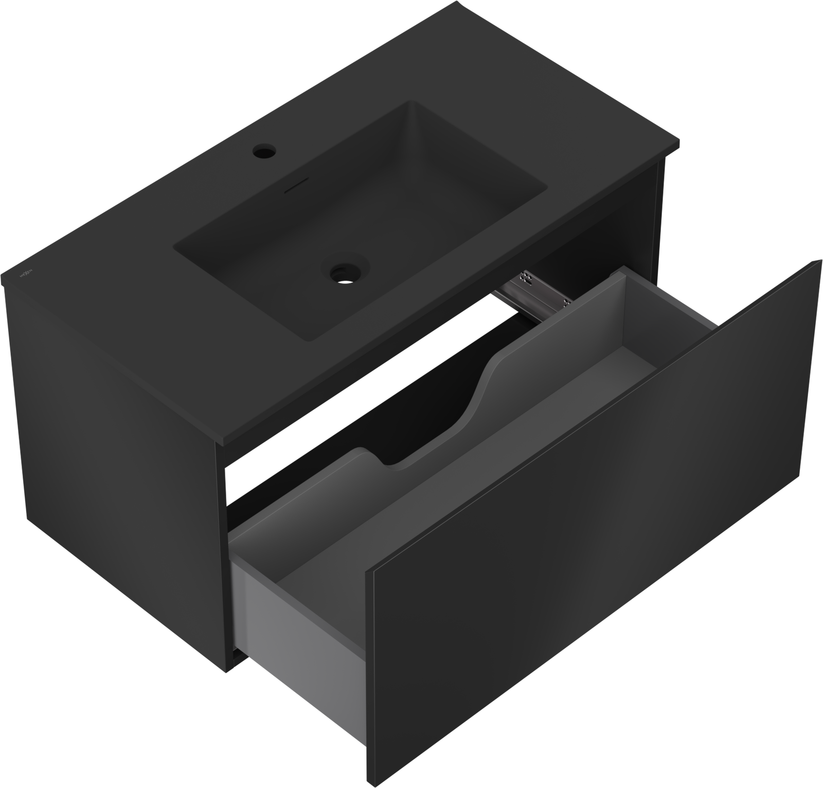Mexen Orio armoire de salle de bain 90 cm avec lavabo Otis, 1 tiroir, noir mat - 91A10-09047-1-BF71-W18M71