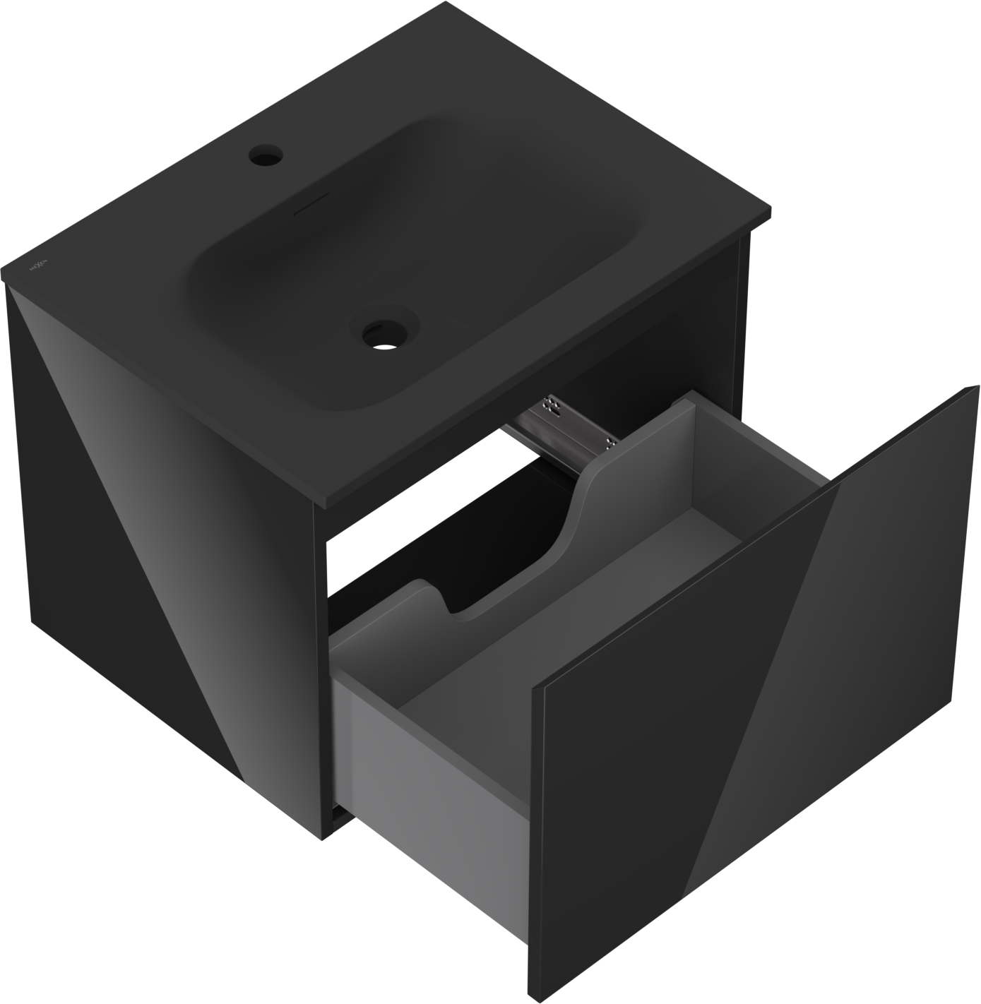 Mexen Orio meuble de salle de bain 60 cm avec lavabo Vela, 1 tiroir, noir brillant/noir mat - 91A10-06047-1-BF70-W23M71