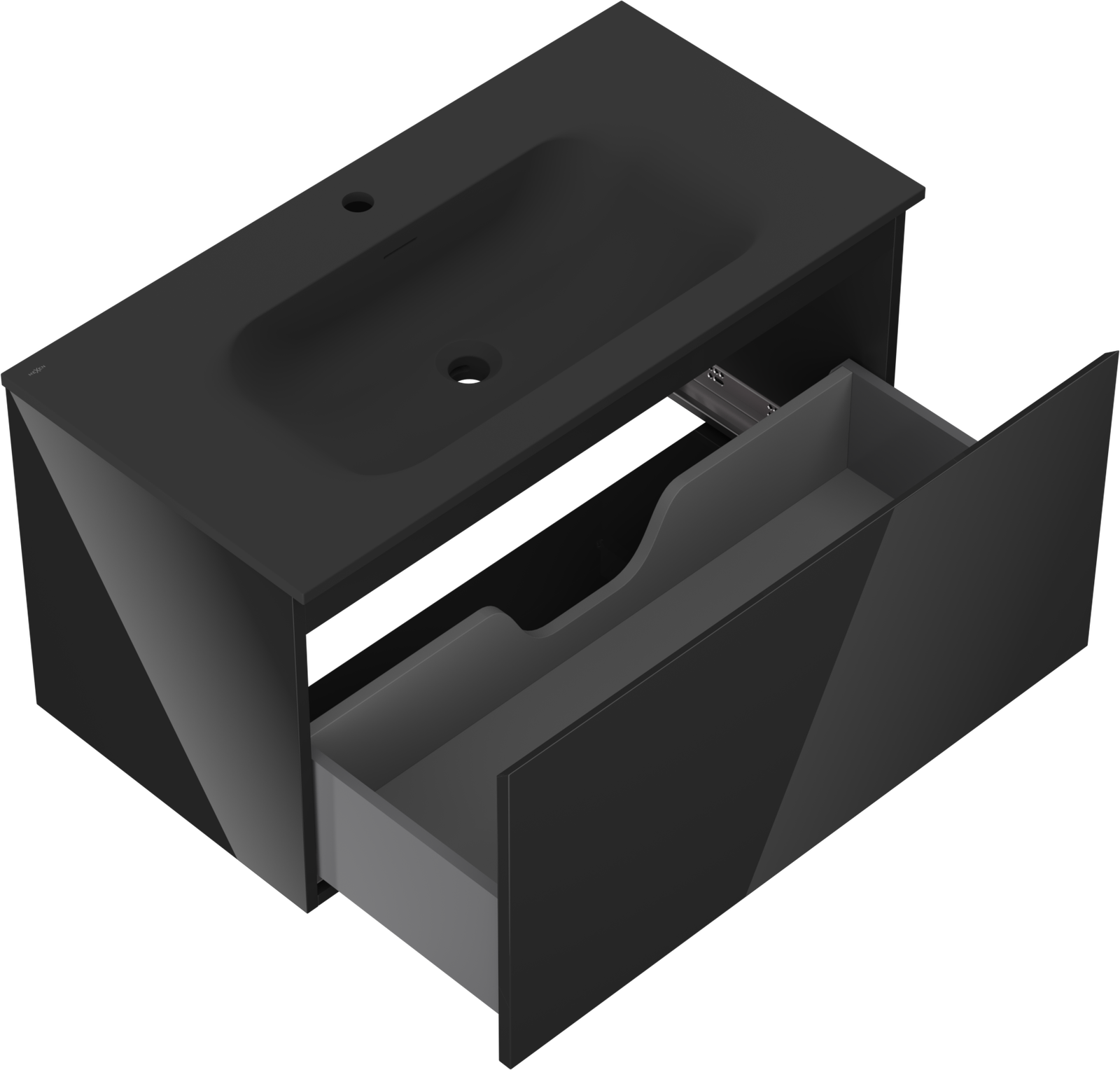 Mexen Orio meuble de salle de bains 90 cm avec lavabo Vela, 1 tiroir, noir brillant/noir mat - 91A10-09047-1-BF70-W23M71