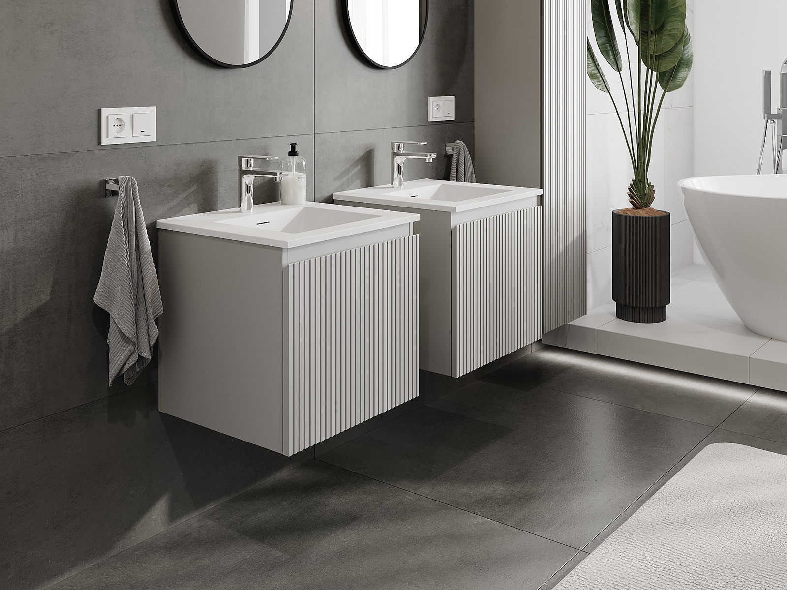 Mexen Rivel armoire de salle de bain 50 cm avec lavabo Otis, 1 tiroir, rainuré, gris mat/blanc mat - 91A20-05047-1-BF62-W18M01