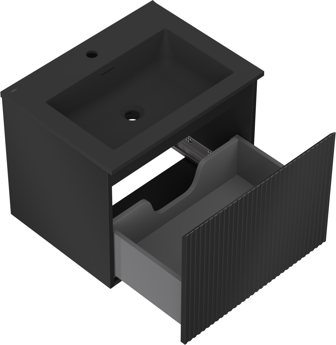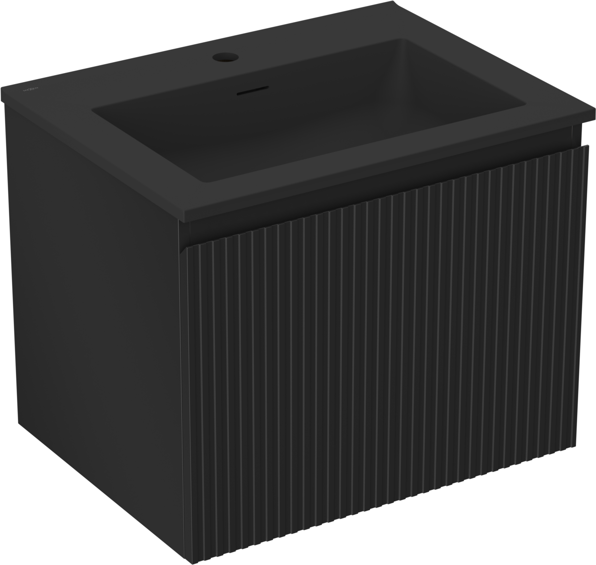 Mexen Rivel meuble de salle de bain 60 cm avec lavabo Otis, 1 tiroir, rainuré, noir mat - 91A20-06047-1-BF71-W18M71