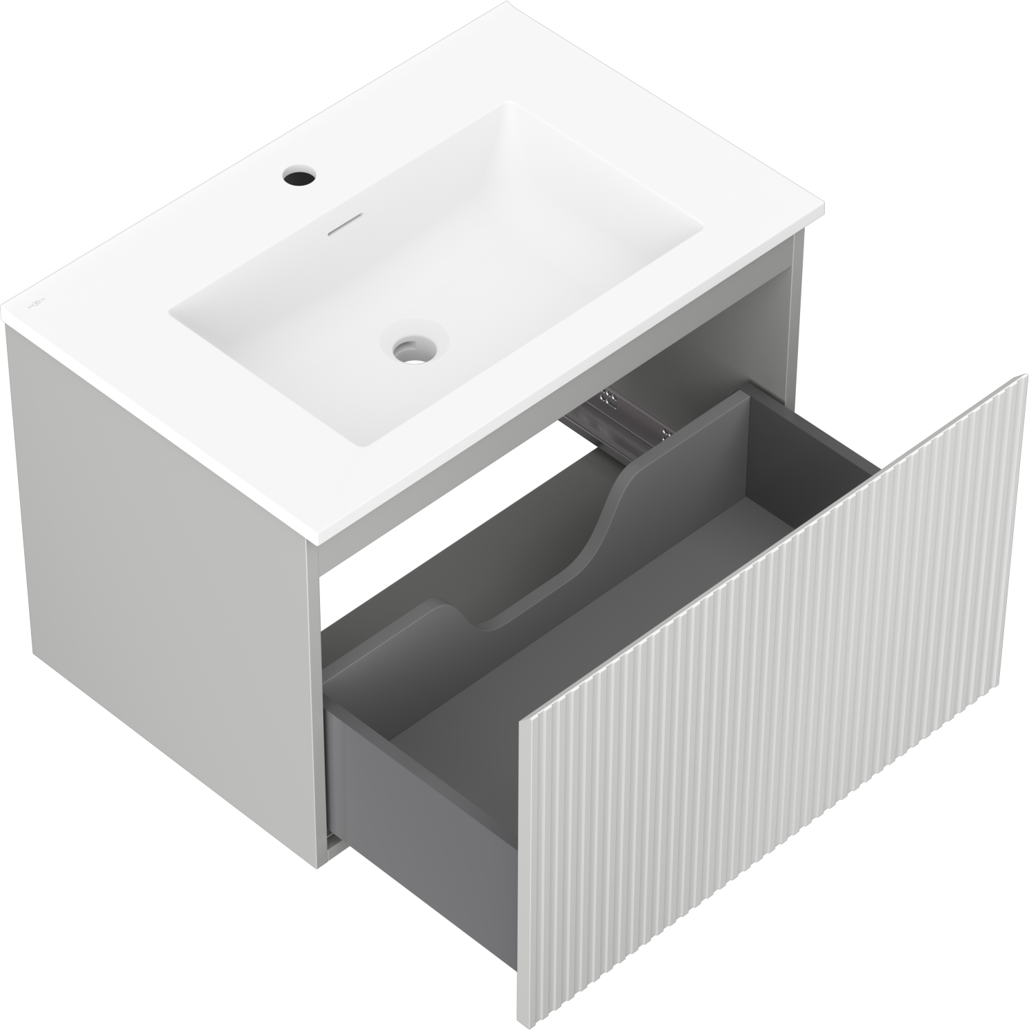 Mexen Rivel meuble de salle de bain 70 cm avec lavabo Otis, 1 tiroir, rainuré, gris mat/blanc mat - 91A20-07047-1-BF62-W18M01