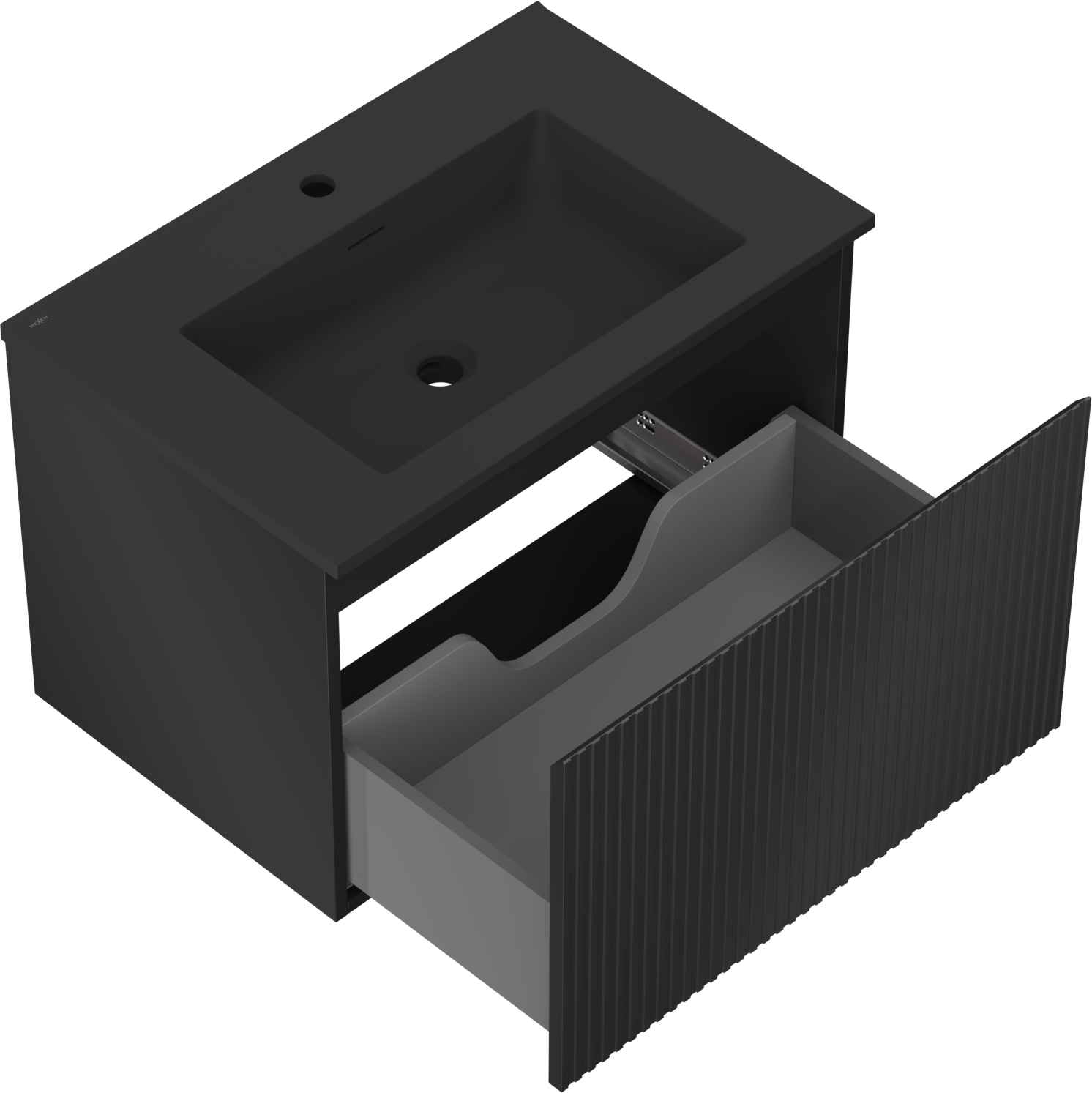Mexen Rivel meuble de salle de bain 70 cm avec lavabo Otis, 1 tiroir, rainuré, noir mat - 91A20-07047-1-BF71-W18M71