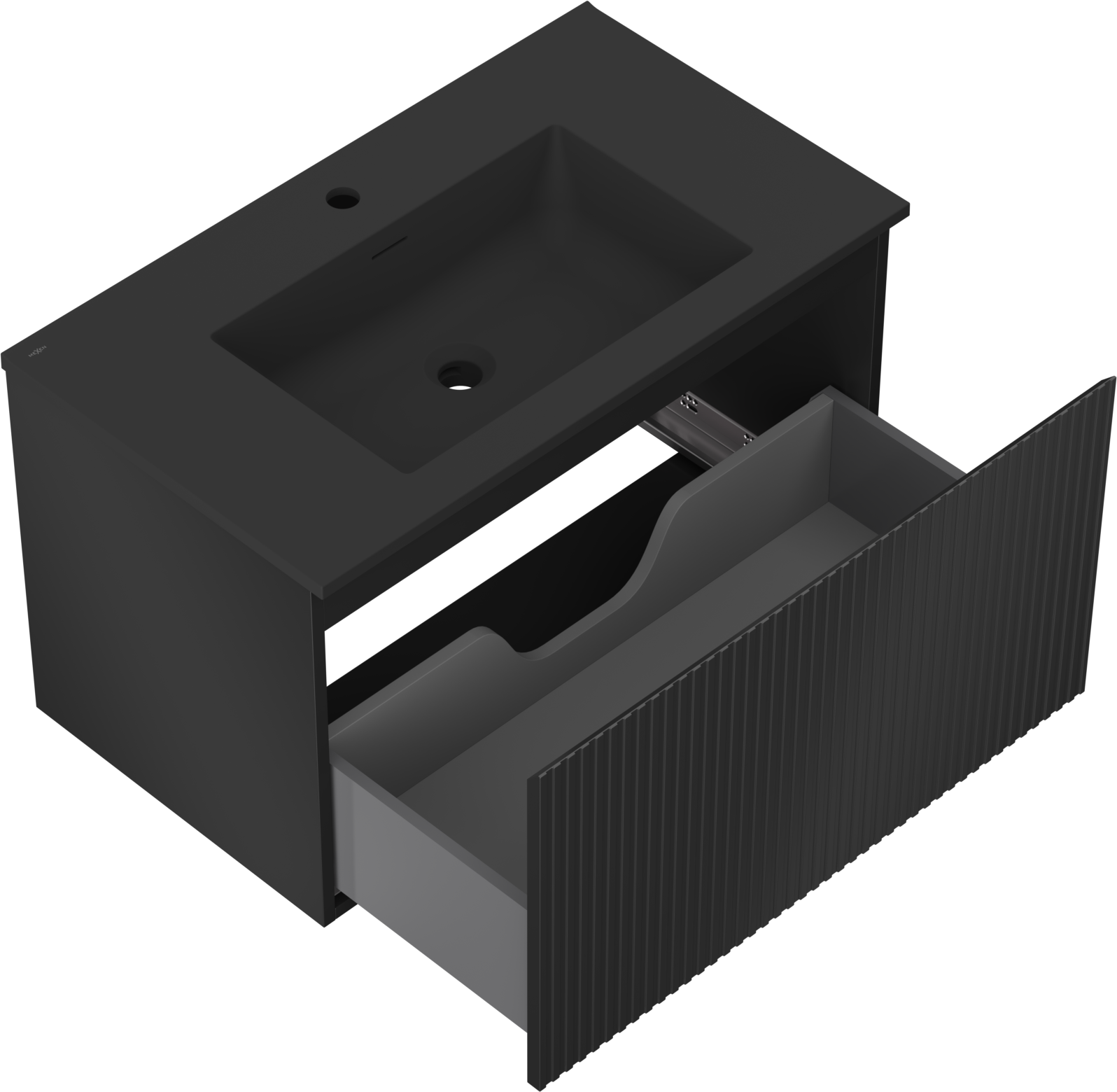 Mexen Rivel meuble de salle de bain 80 cm avec lavabo Otis, 1 tiroir, rainuré, noir mat - 91A20-08047-1-BF71-W18M71