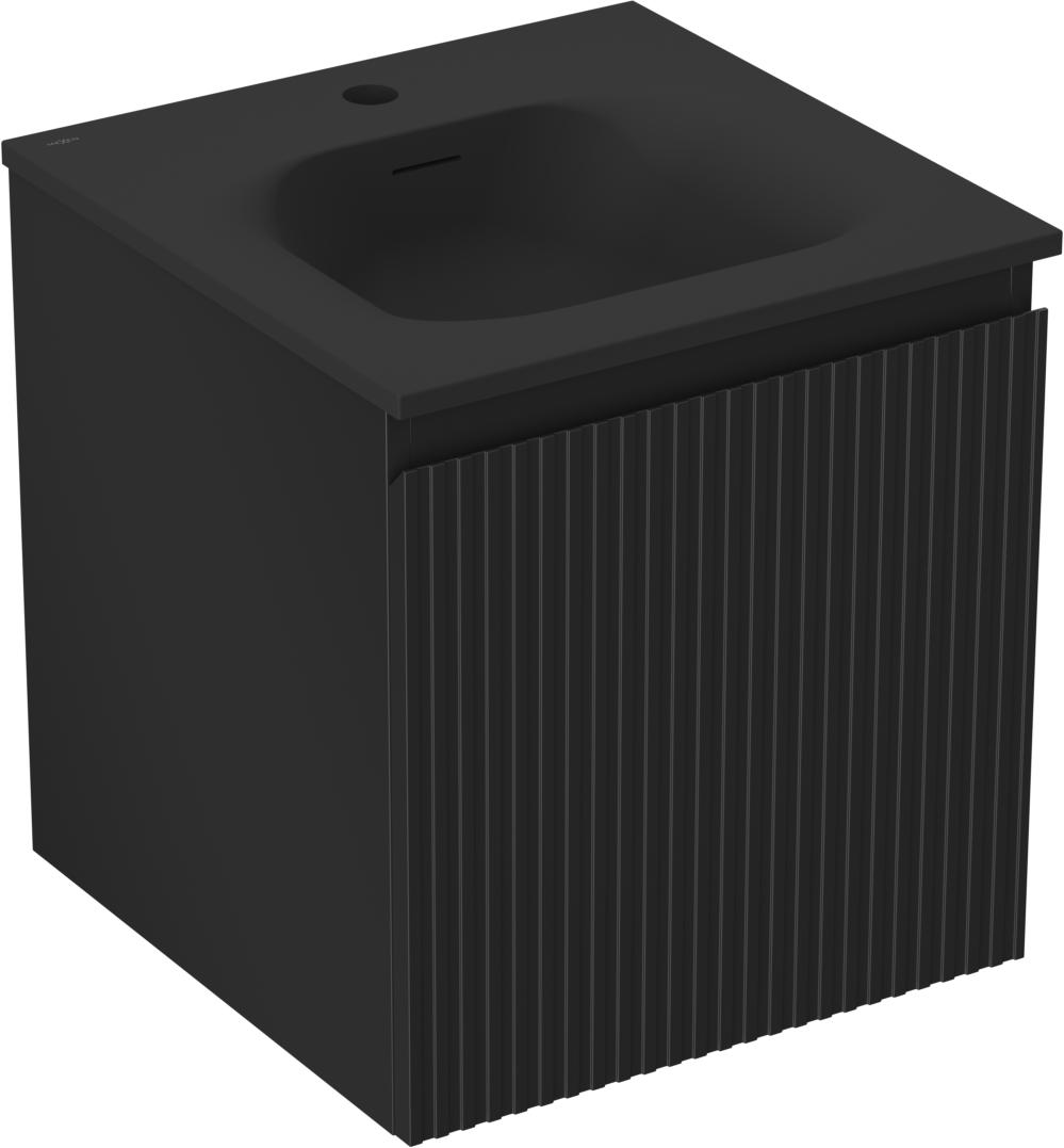 Mexen Rivel meuble de salle de bain 45 cm avec lavabo Vela, 1 tiroir, rainuré, noir mat - 91A20-04547-1-BF71-W23M71