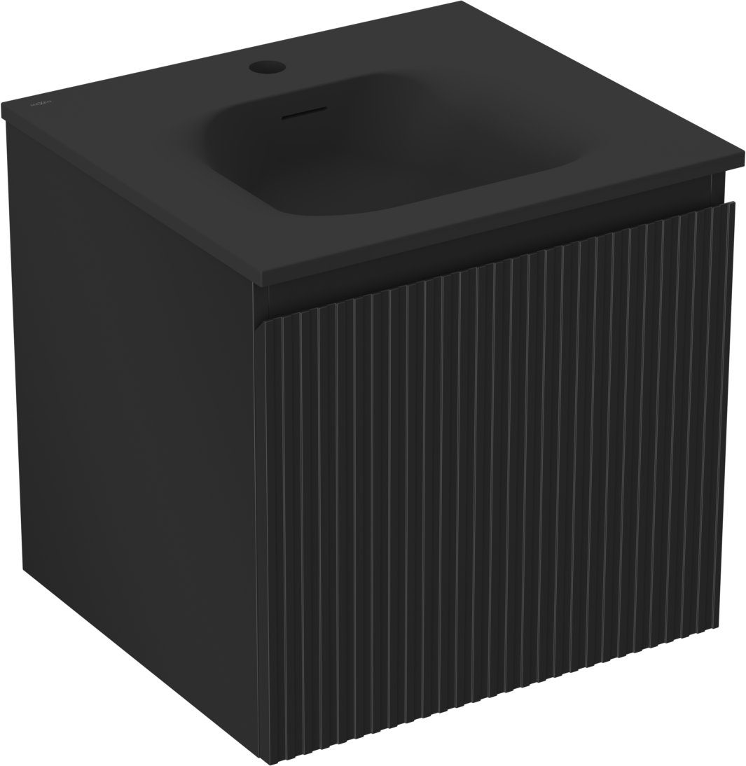 Mexen Rivel armoire de salle de bain 50 cm avec lavabo Vela, 1 tiroir, rainuré, noir mat - 91A20-05047-1-BF71-W23M71