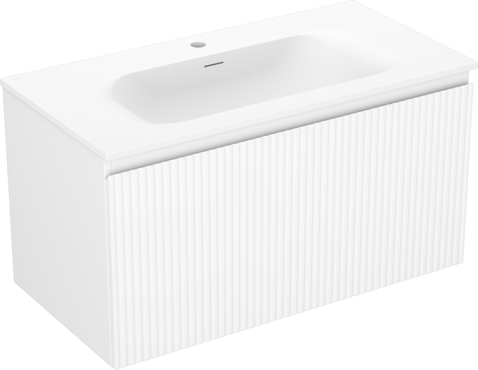 Mexen Rivel meuble de salle de bains 90 cm avec lavabo Vela, 1 tiroir, rainuré, blanc mat - 91A20-09047-1-BF01-W23M01