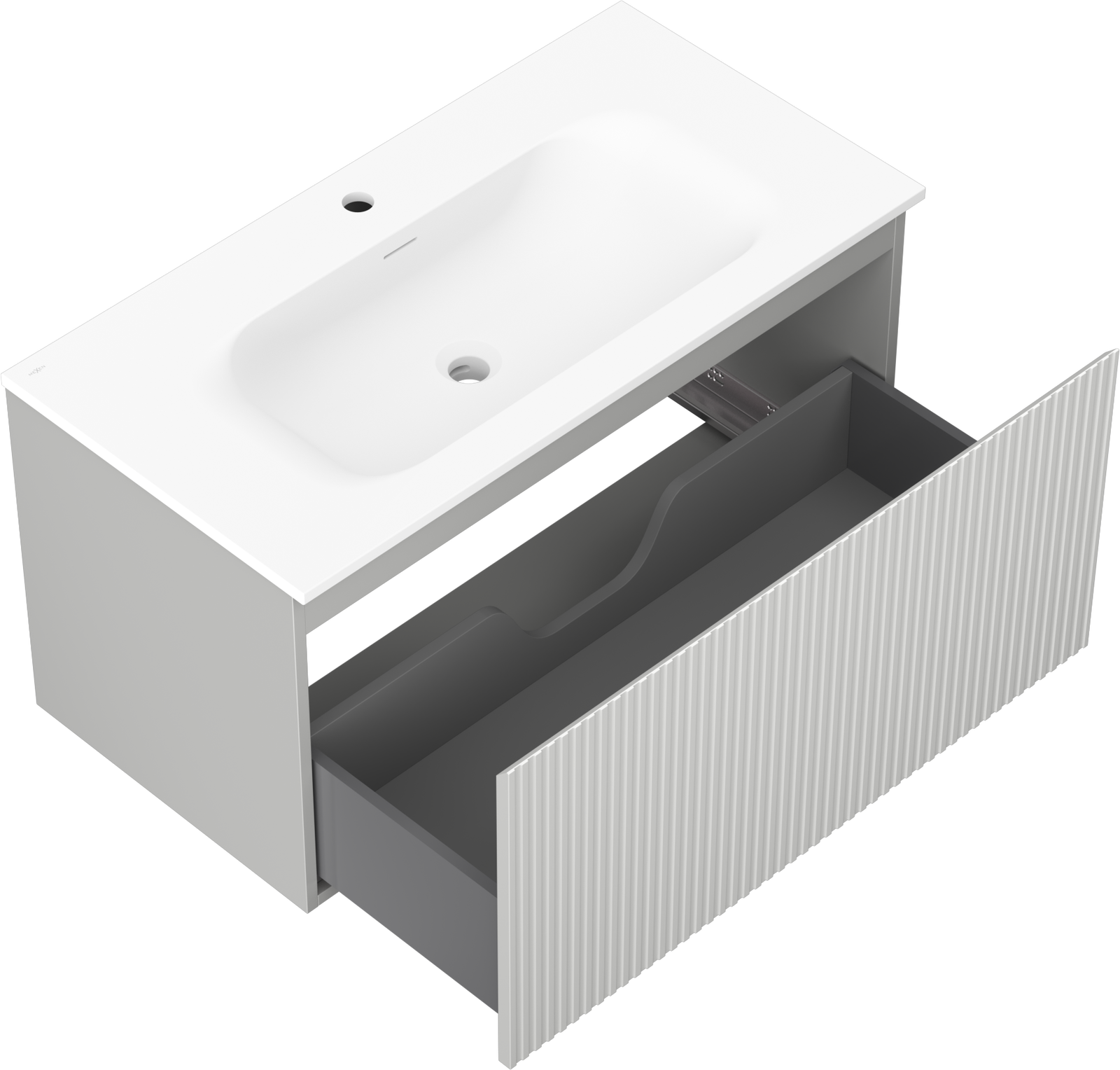 Mexen Rivel armoire de salle de bain 90 cm avec lavabo Vela, 1 tiroir, rainurée, gris mat/blanc mat - 91A20-09047-1-BF62-W23M01
