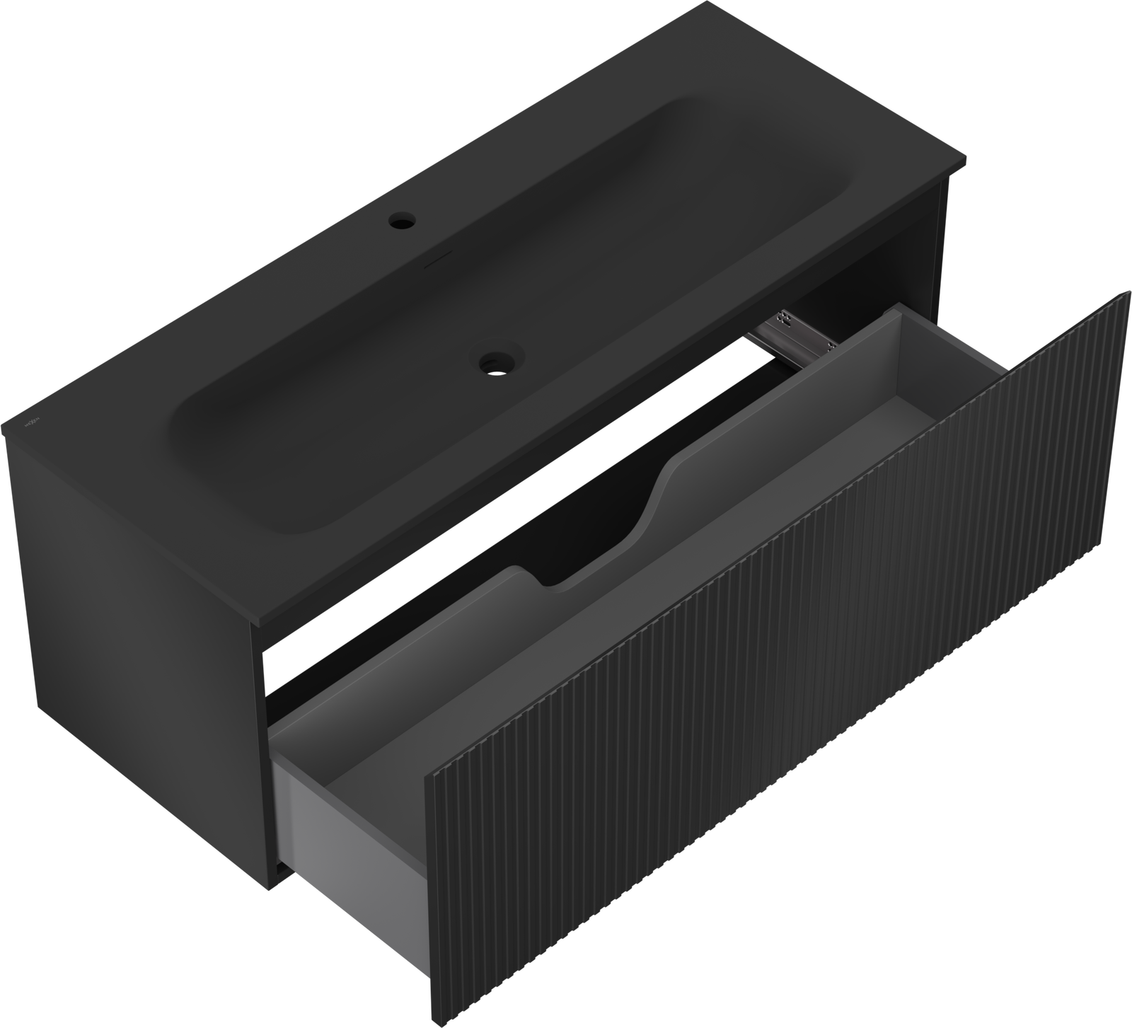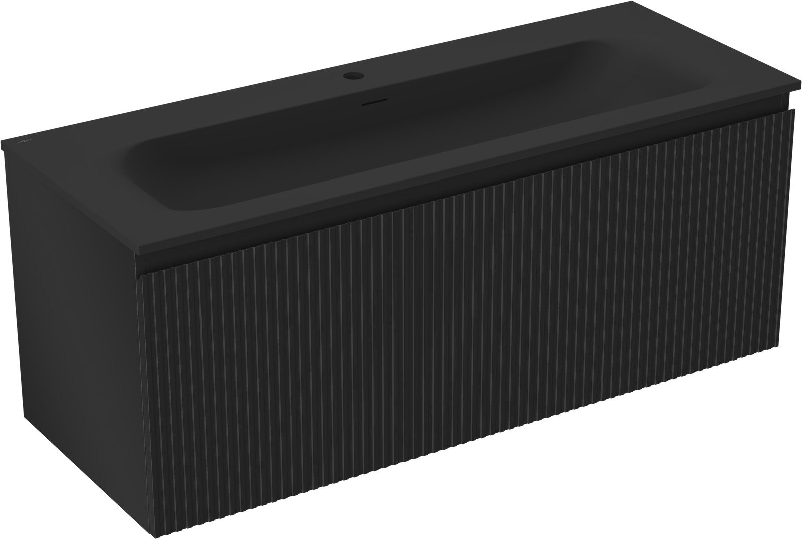 Mexen Rivel meuble de salle de bain 120 cm avec lavabo Vela, 1 tiroir, rainuré, noir mat - 91A20-12047-1-BF71-W23M71