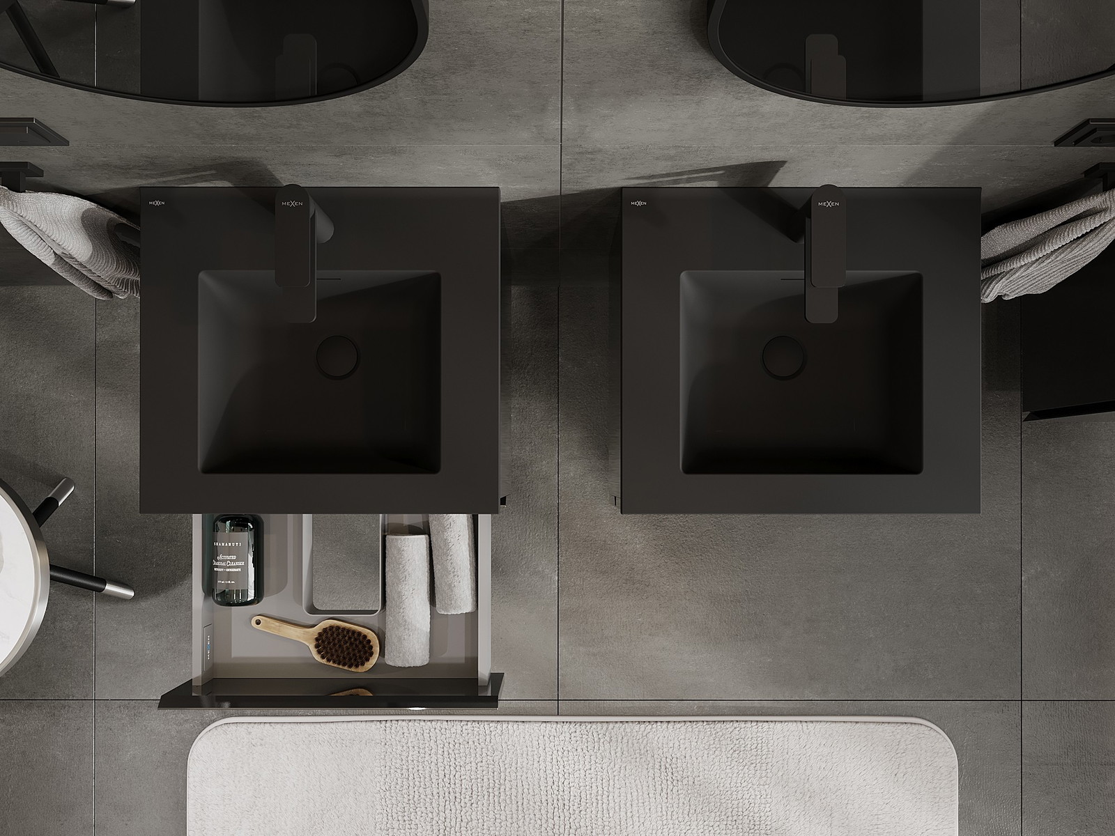 Mexen Orio armoire de salle de bain 50 cm avec lavabo Otis, 2 tiroirs, noir brillant/noir mat - 91A10-05047-2-BFF70-W18M71