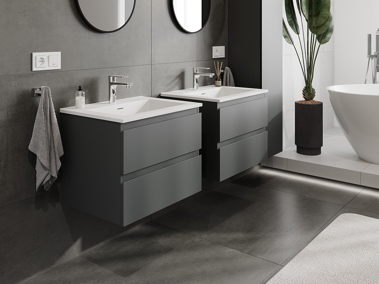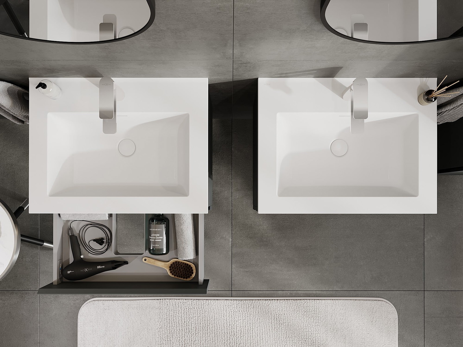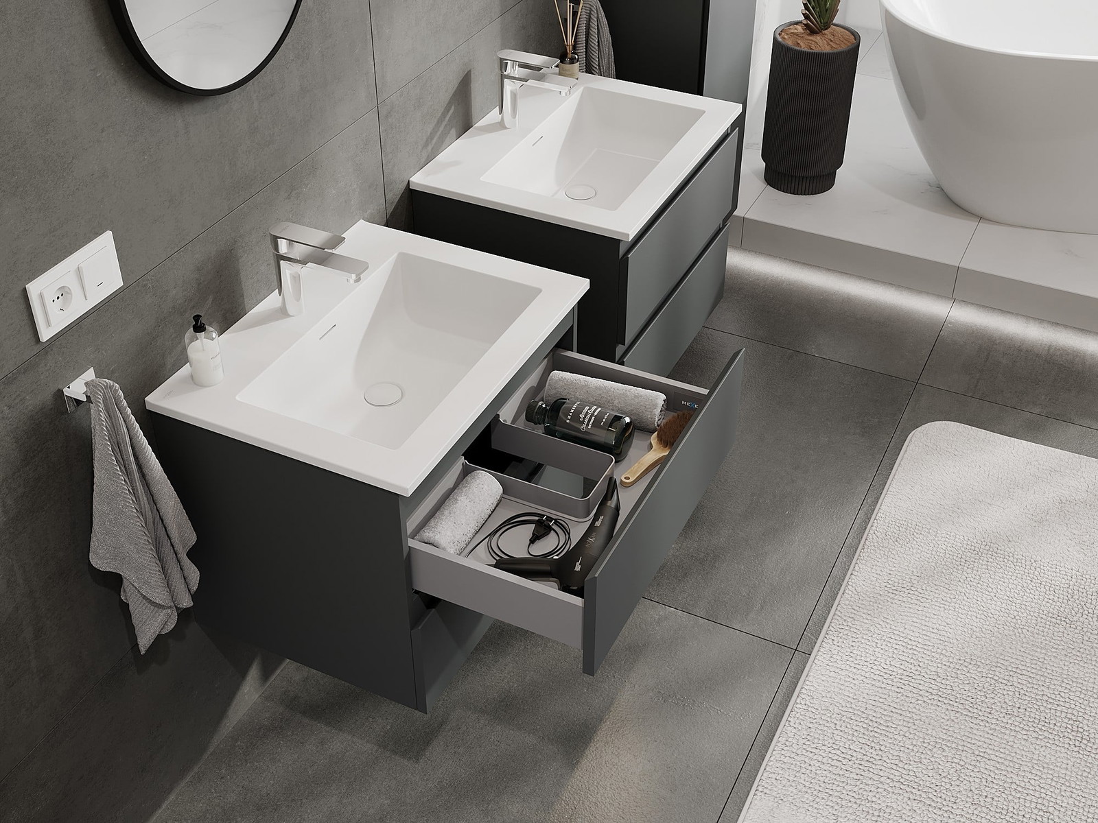 Mexen Orio meuble de salle de bain 60 cm avec lavabo Otis, 2 tiroirs, graphite mat / blanc mat - 91A10-06047-2-BFF66-W18M01