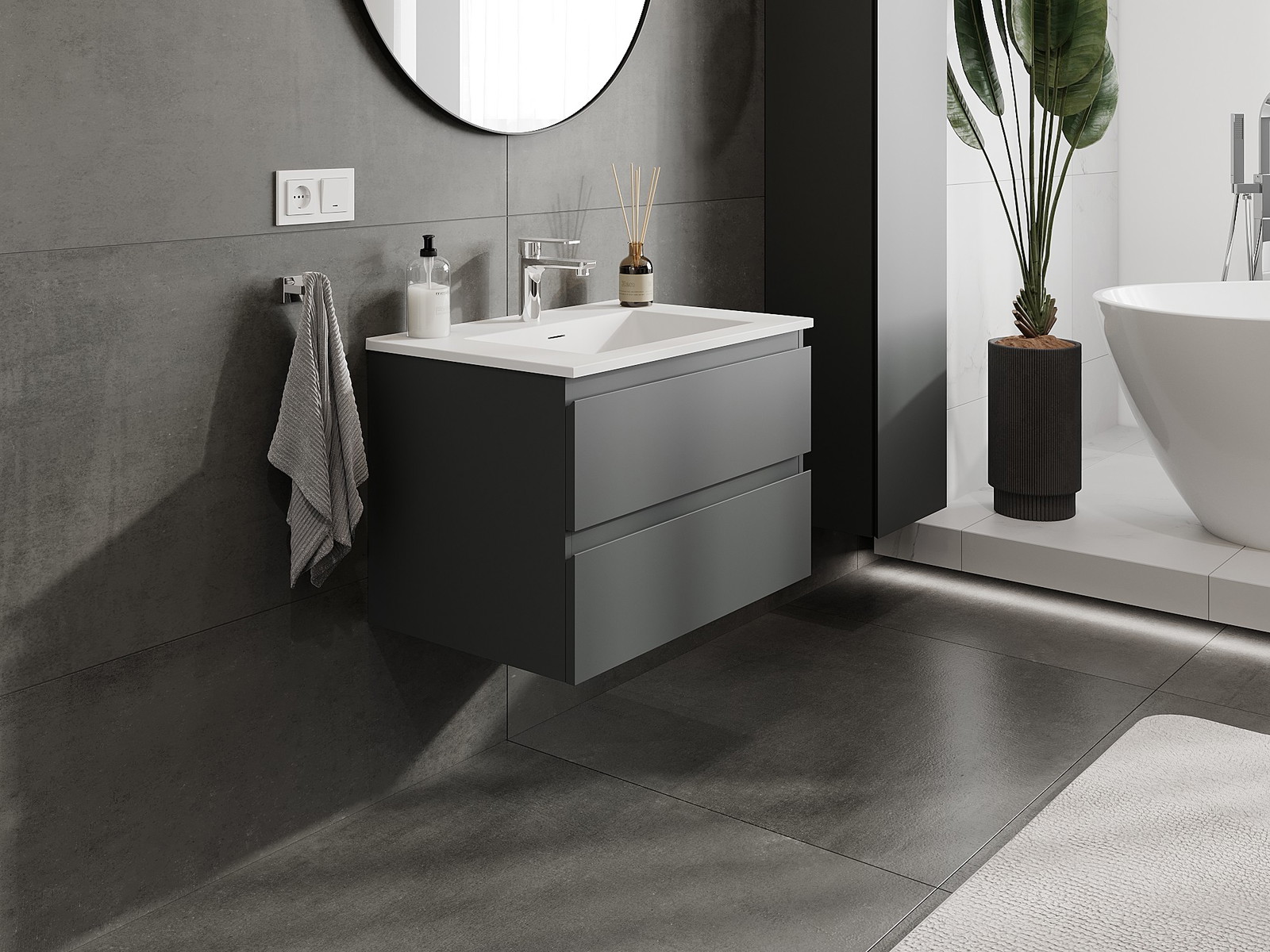 Mexen Orio armoire de salle de bain 70 cm avec lavabo Otis, 2 tiroirs, graphite mat/blanc mat - 91A10-07047-2-BFF66-W18M01