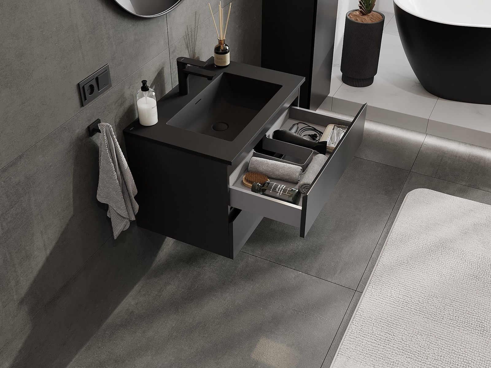 Mexen Orio armoire de salle de bain 70 cm avec lavabo Otis, 2 tiroirs, noir mat - 91A10-07047-2-BFF71-W18M71