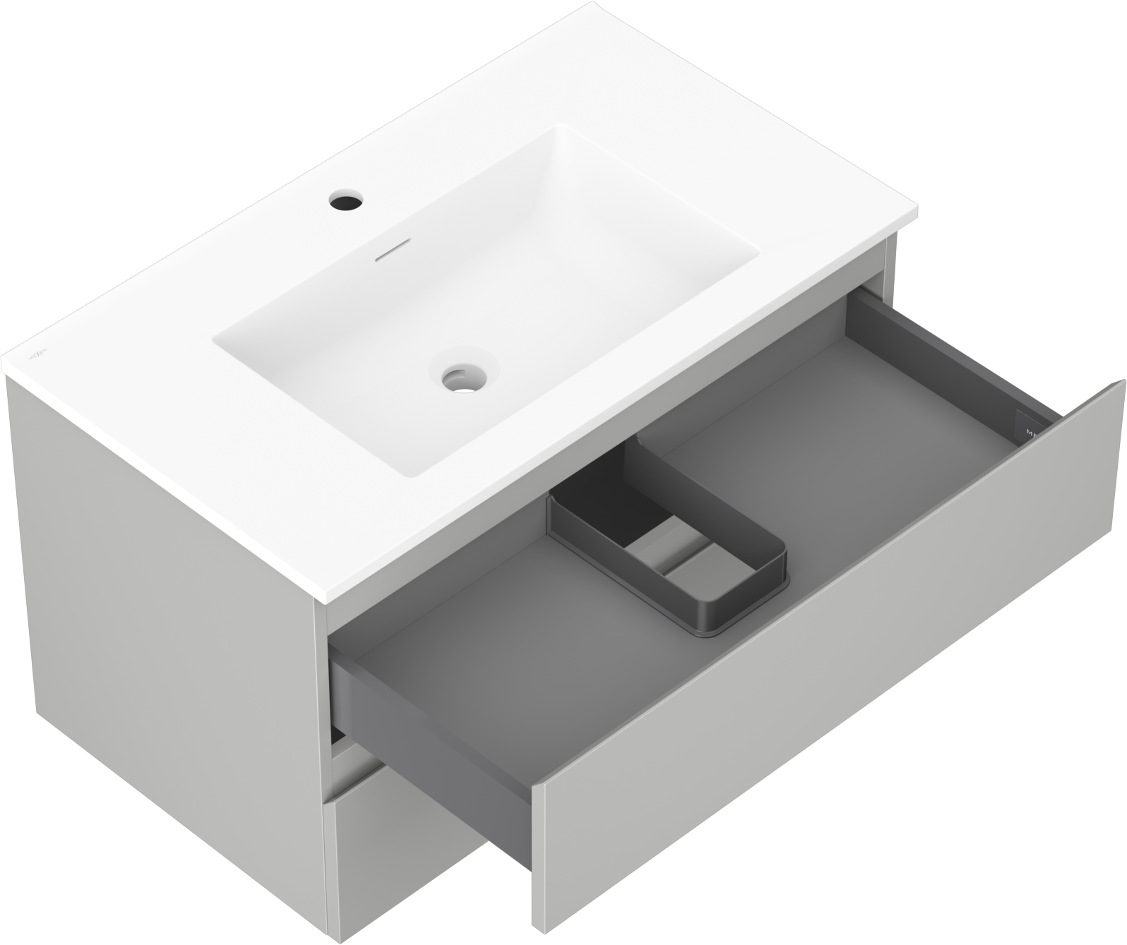 La découpe dans le tiroir est conçue de manière à accueillir le siphon, qui est nécessaire dans les installations de lavabo. Ainsi, le meuble peut être installé de manière pleinement fonctionnelle, sans devoir renoncer à l'espace du tiroir au profit de l'installation.