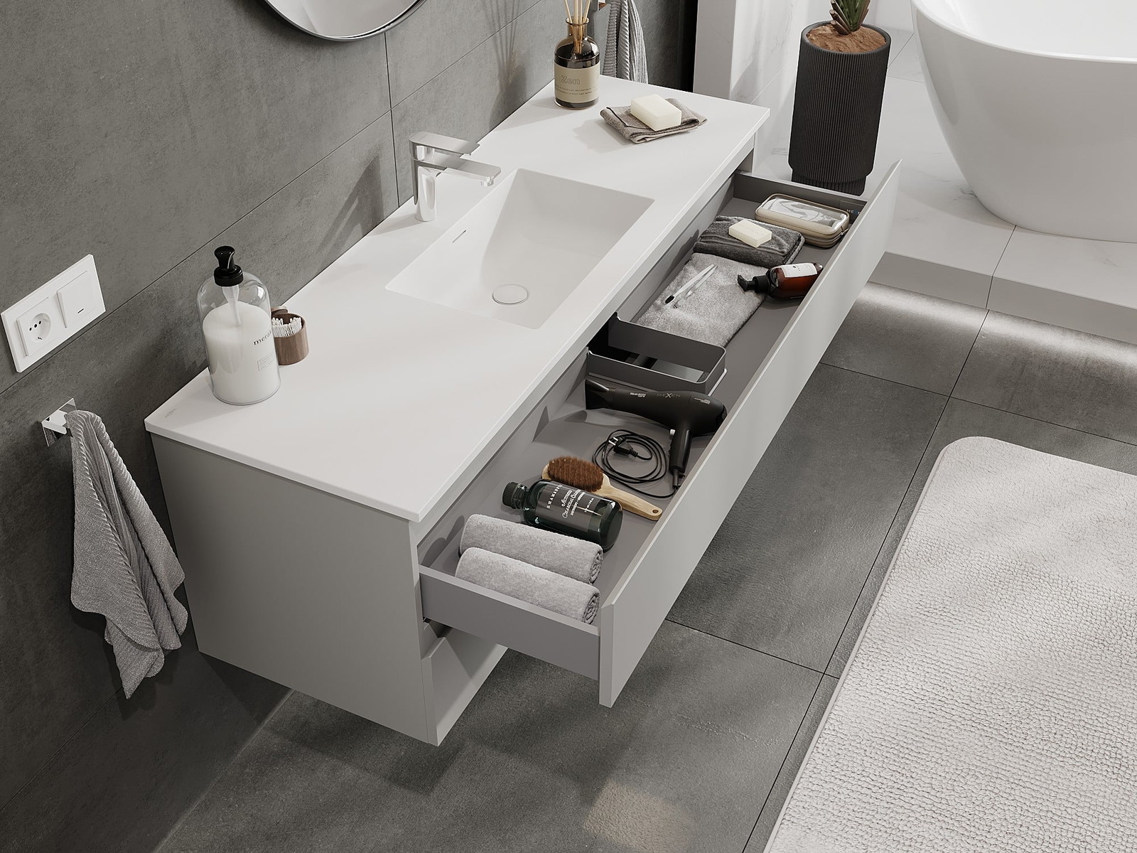 Mexen Orio meuble de salle de bains 140 cm avec lavabo Otis, 2 tiroirs, gris mat/blanc mat - 91A10-14047-2-BFF62-W18M01