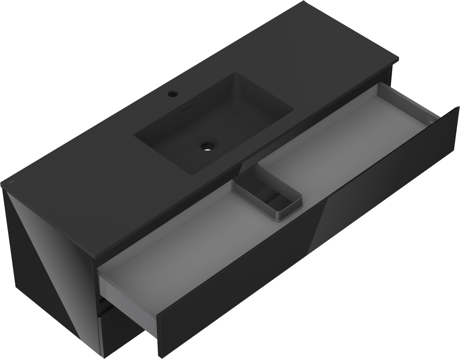 La découpe dans le tiroir est conçue de manière à accueillir le siphon, qui est nécessaire dans les installations de lavabo. Ainsi, le meuble peut être installé de manière pleinement fonctionnelle, sans devoir renoncer à l'espace du tiroir au profit de l'installation.