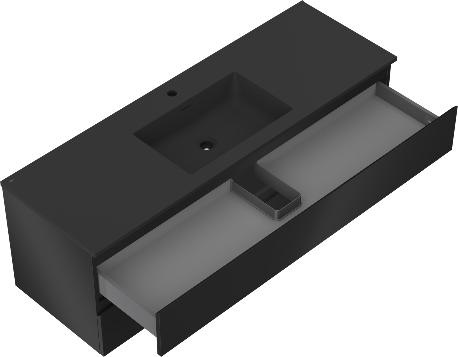 La découpe dans le tiroir est conçue de manière à accueillir le siphon, qui est nécessaire dans les installations de lavabo. Ainsi, le meuble peut être installé de manière pleinement fonctionnelle, sans devoir renoncer à l'espace du tiroir au profit de l'installation.
