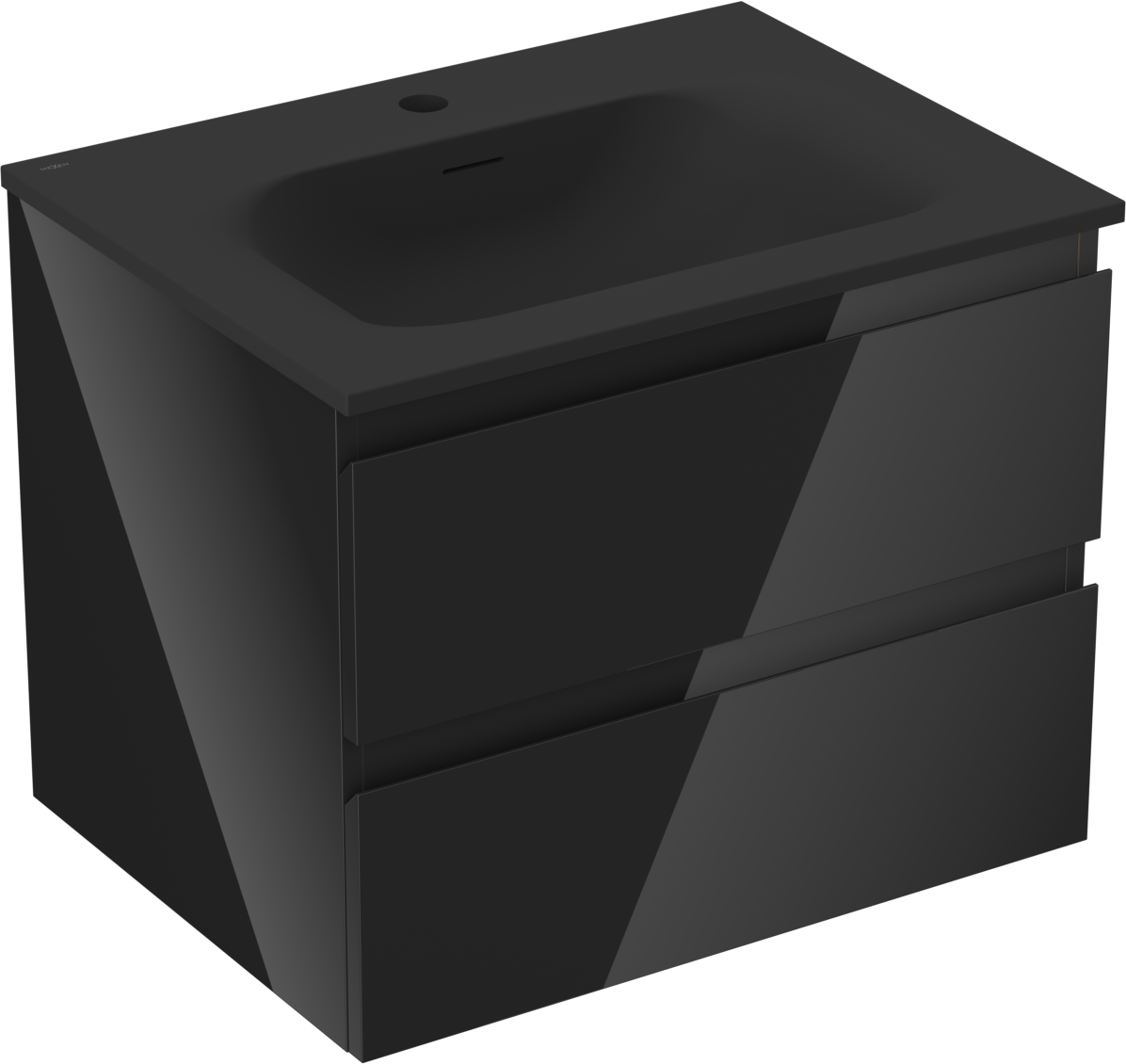 Mexen Orio meuble de salle de bain 60 cm avec lavabo Vela, 2 tiroirs, noir brillant/noir mat - 91A10-06047-2-BFF70-W23M71