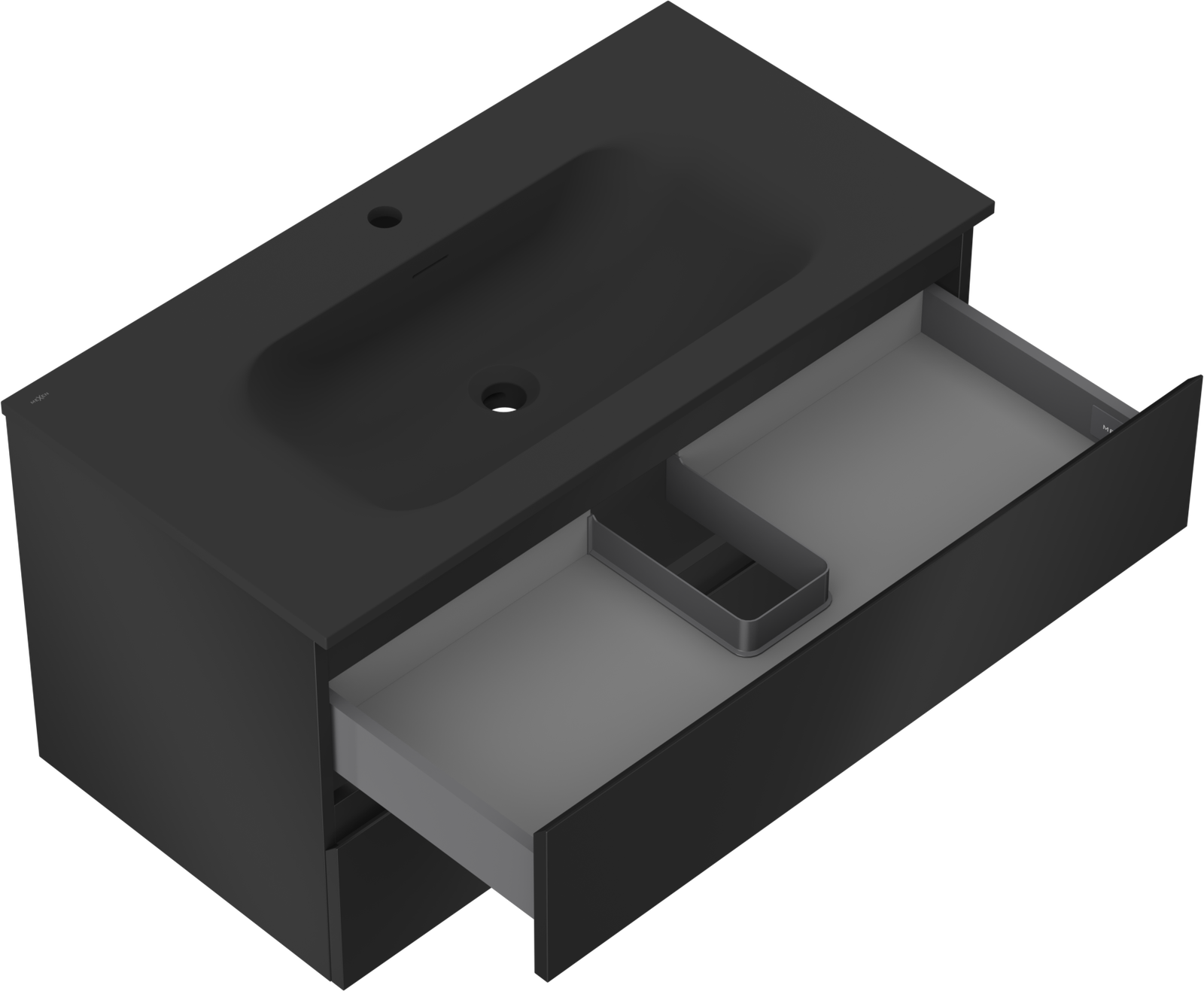 La découpe dans le tiroir est conçue de manière à accueillir le siphon, qui est nécessaire dans les installations de lavabo. Ainsi, le meuble peut être installé de manière pleinement fonctionnelle, sans devoir renoncer à l'espace du tiroir au profit de l'installation.