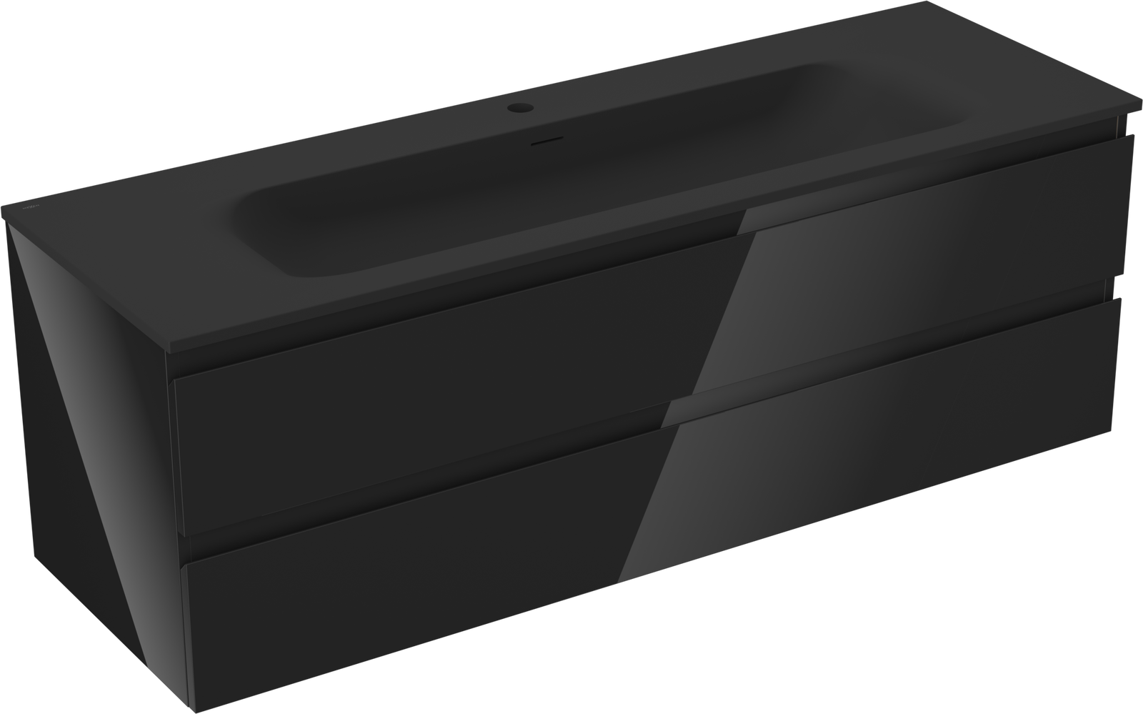 Mexen Orio meuble de salle de bains 140 cm avec lavabo Vela, 2 tiroirs, noir brillant/noir mat - 91A10-14047-2-BFF70-W23M71
