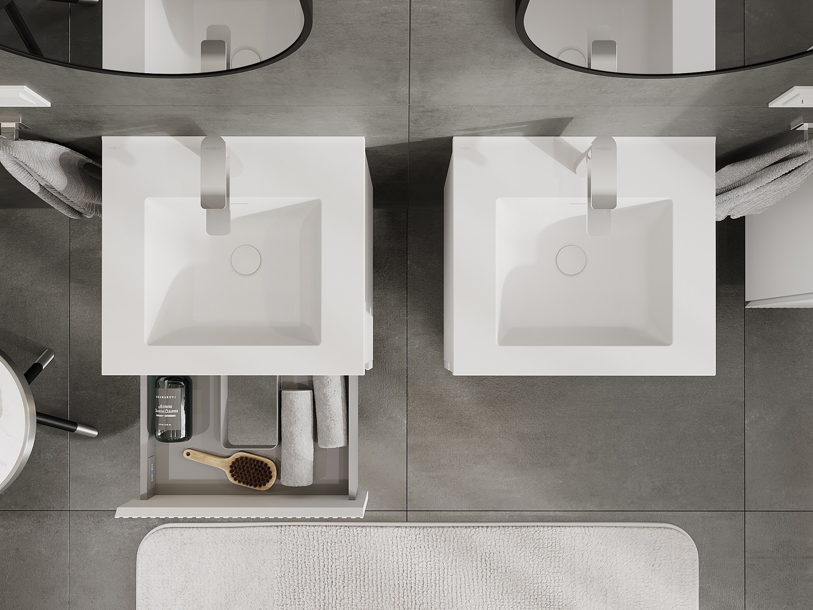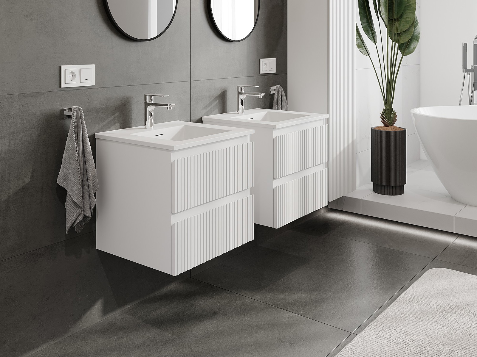 Mexen Rivel meuble de salle de bain 50 cm avec lavabo Otis, 2 tiroirs, rainuré, blanc mat - 91A20-05047-2-BFF01-W18M01