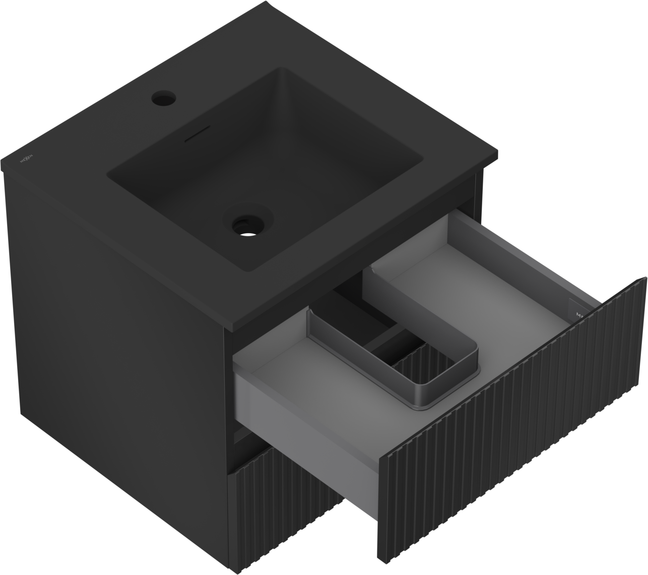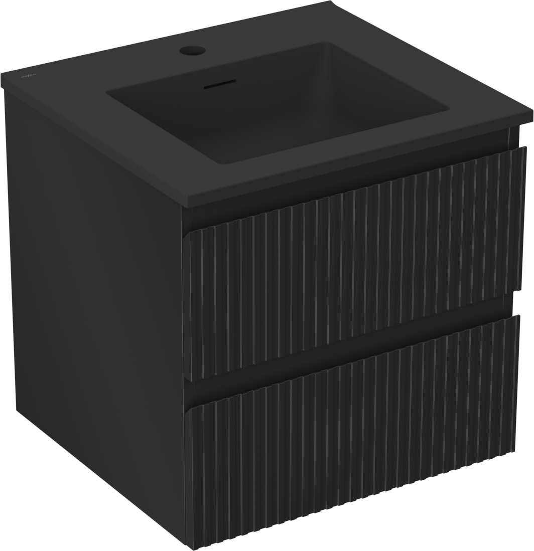 Mexen Rivel meuble de salle de bain 50 cm avec lavabo Otis, 2 tiroirs, rainuré, noir mat - 91A20-05047-2-BFF71-W18M71