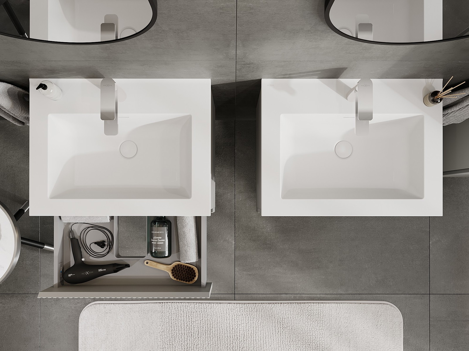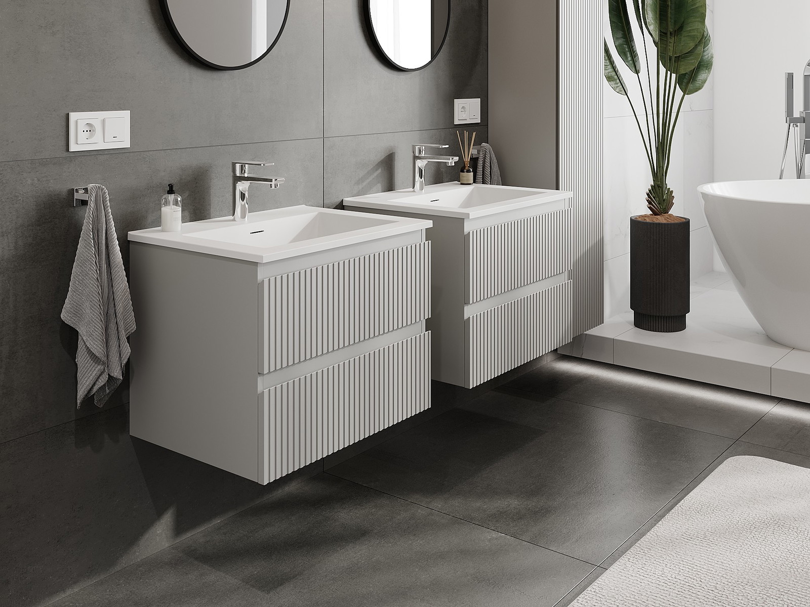 Mexen Rivel meuble de salle de bain 60 cm avec lavabo Otis, 2 tiroirs, rainuré, gris mat/blanc mat - 91A20-06047-2-BFF62-W18M01