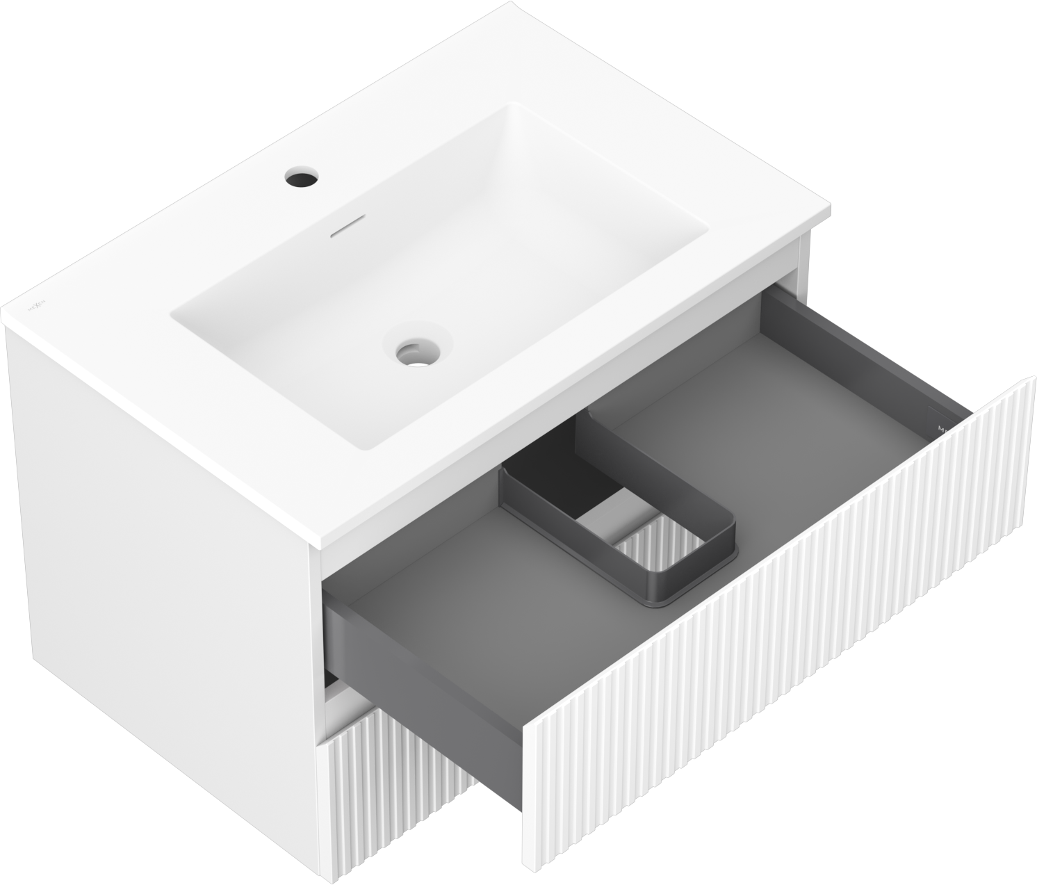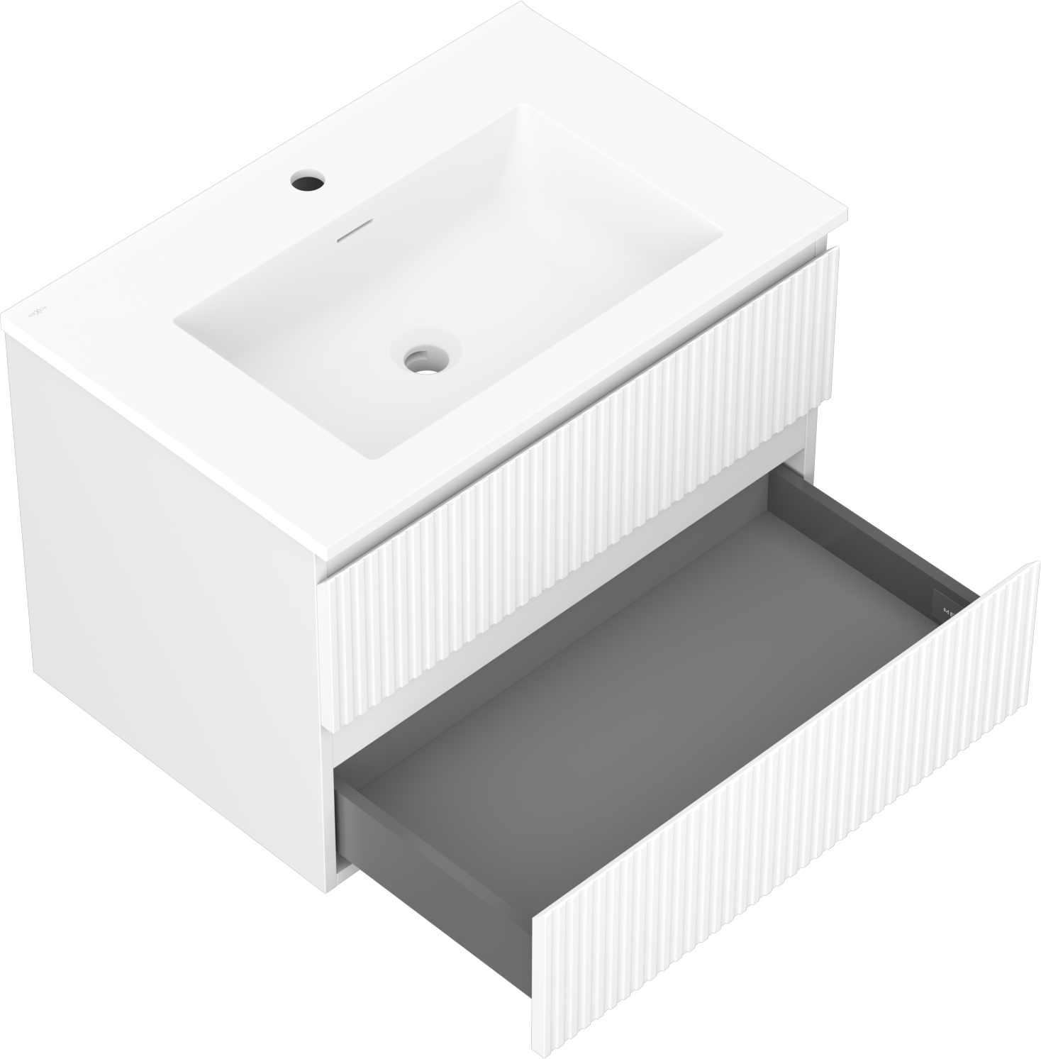 Mexen Rivel meuble de salle de bain 70 cm avec lavabo Otis, 2 tiroirs, rainuré, blanc mat - 91A20-07047-2-BFF01-W18M01