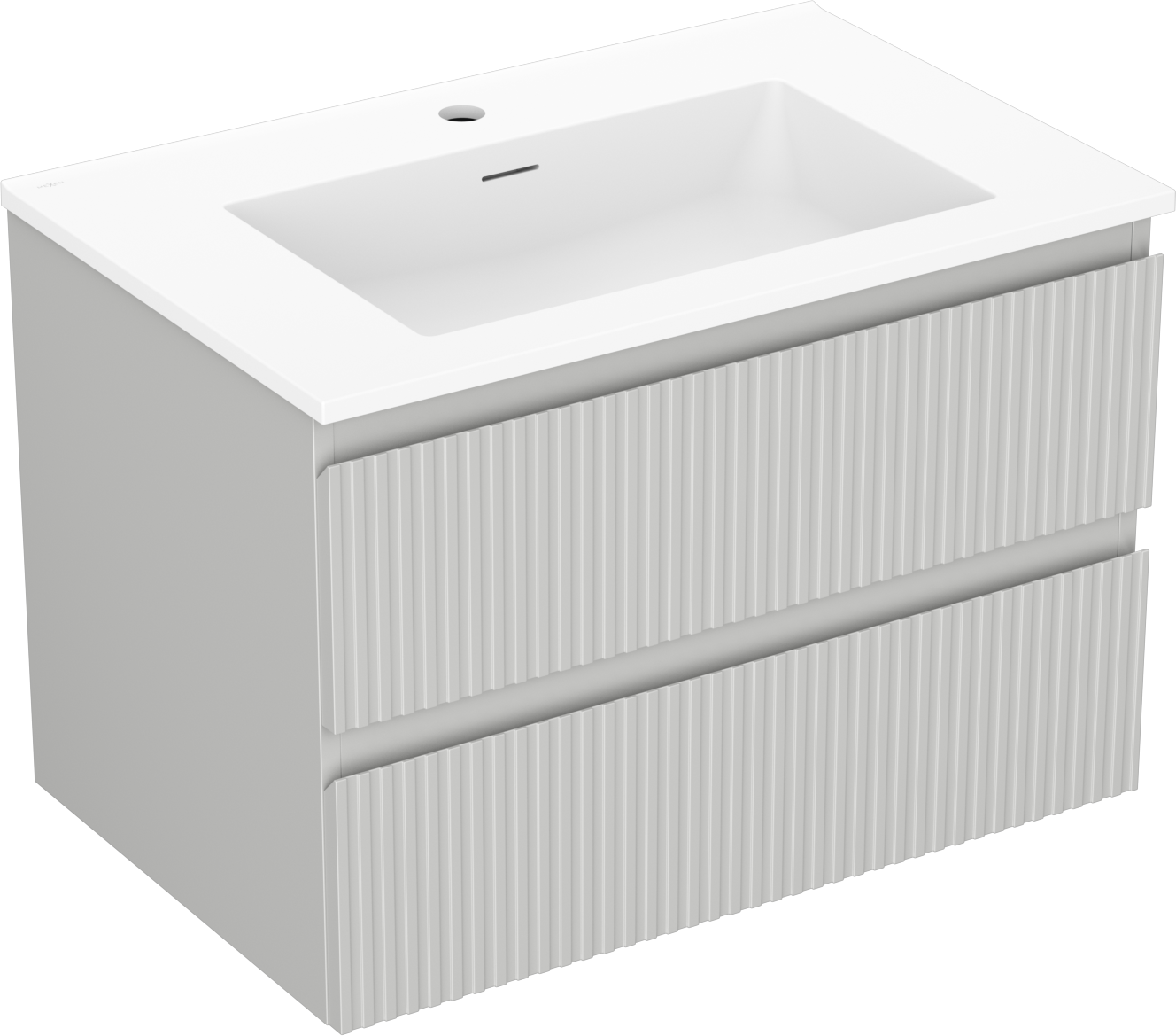 Mexen Rivel meuble de salle de bain 70 cm avec lavabo Otis, 2 tiroirs, rainuré, gris mat/blanc mat - 91A20-07047-2-BFF62-W18M01