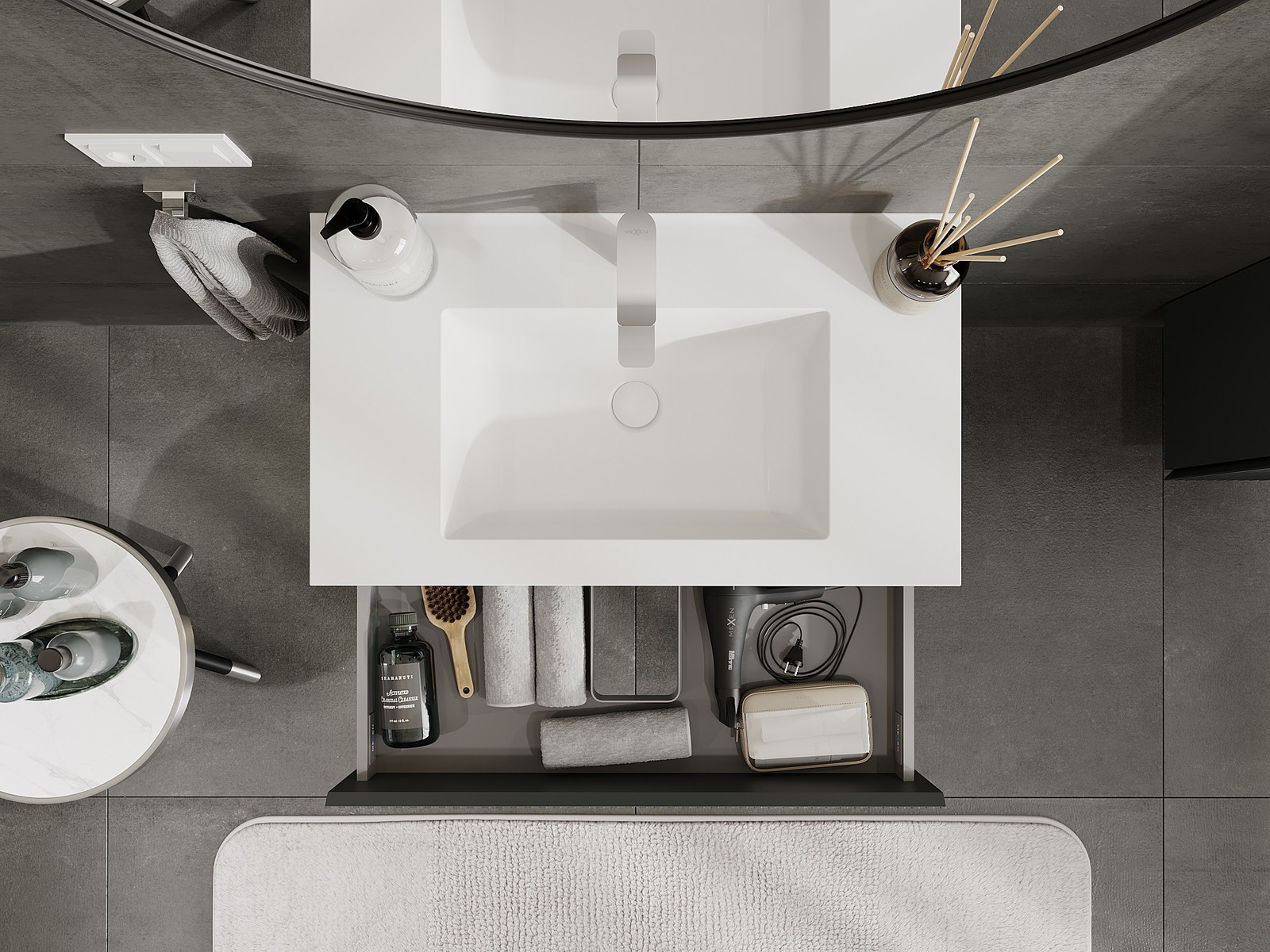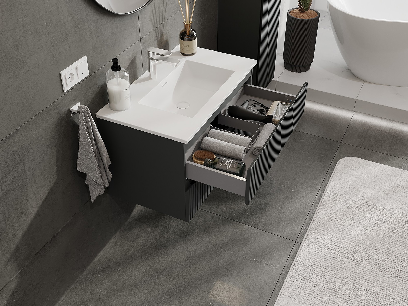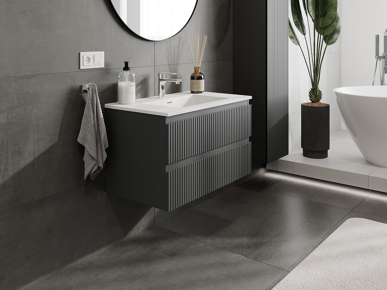 Mexen Rivel armoire de salle de bain 80 cm avec lavabo Otis, 2 tiroirs, rainurée, graphite mat/blanc mat -