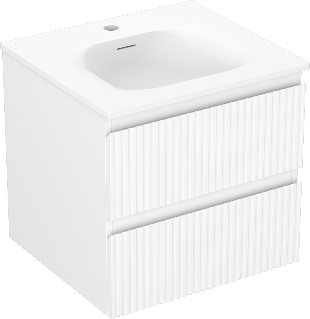 Mexen Rivel meuble de salle de bain 50 cm avec lavabo Vela, 2 tiroirs, cannelé, blanc mat - 91A20-05047-2-BFF01-W23M01
