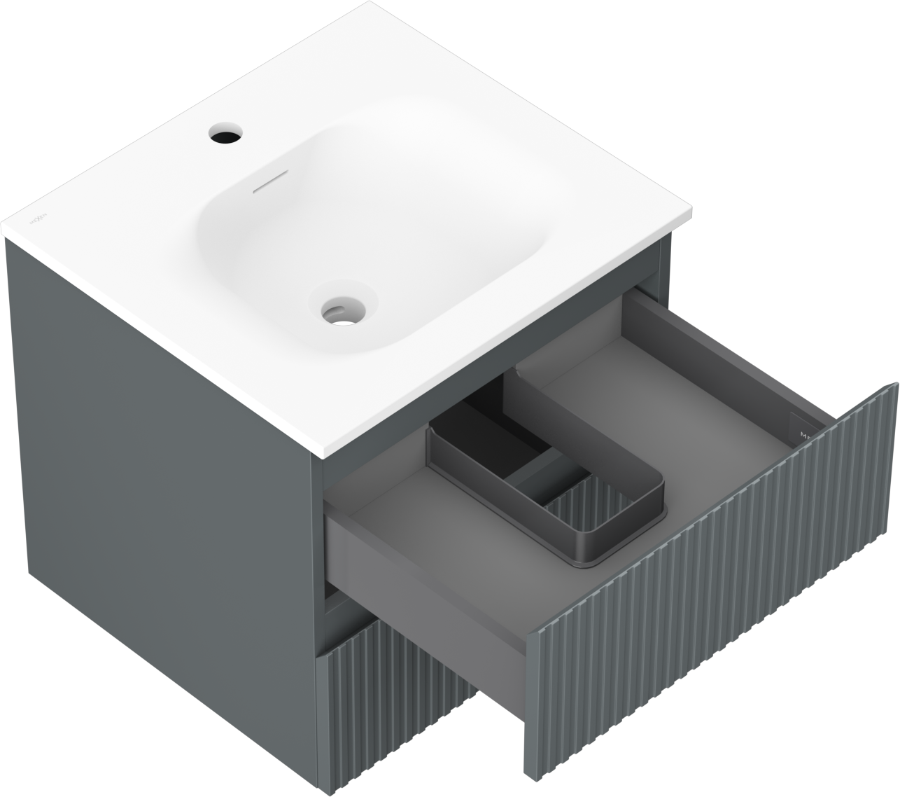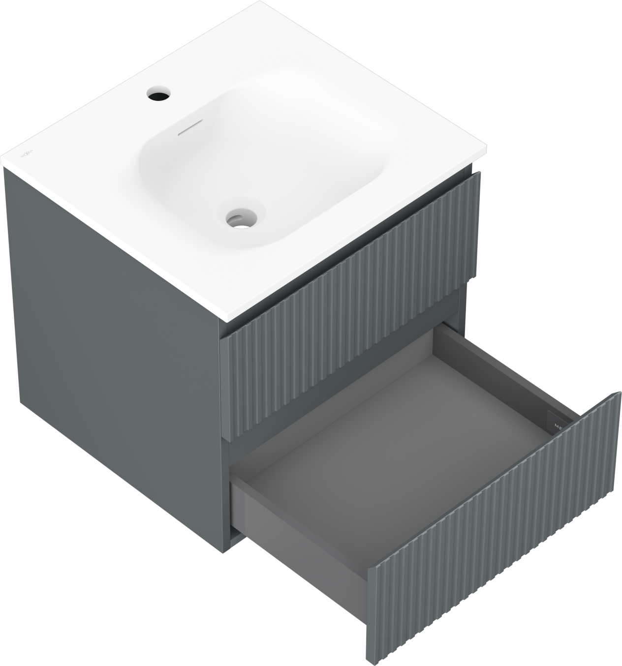 Mexen Rivel meuble de salle de bain 50 cm avec lavabo Vela, 2 tiroirs, rainuré, graphite mat/blanc mat