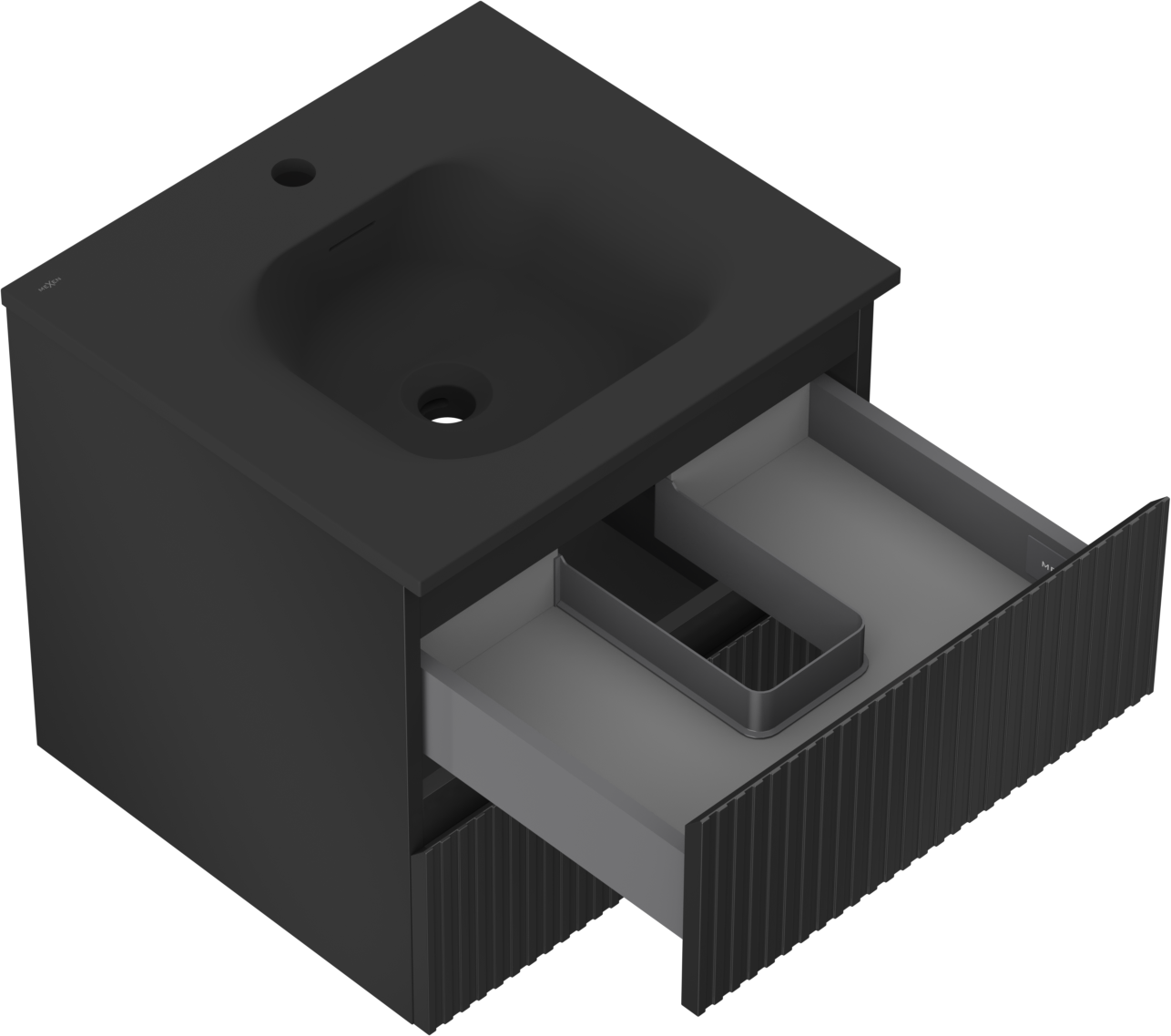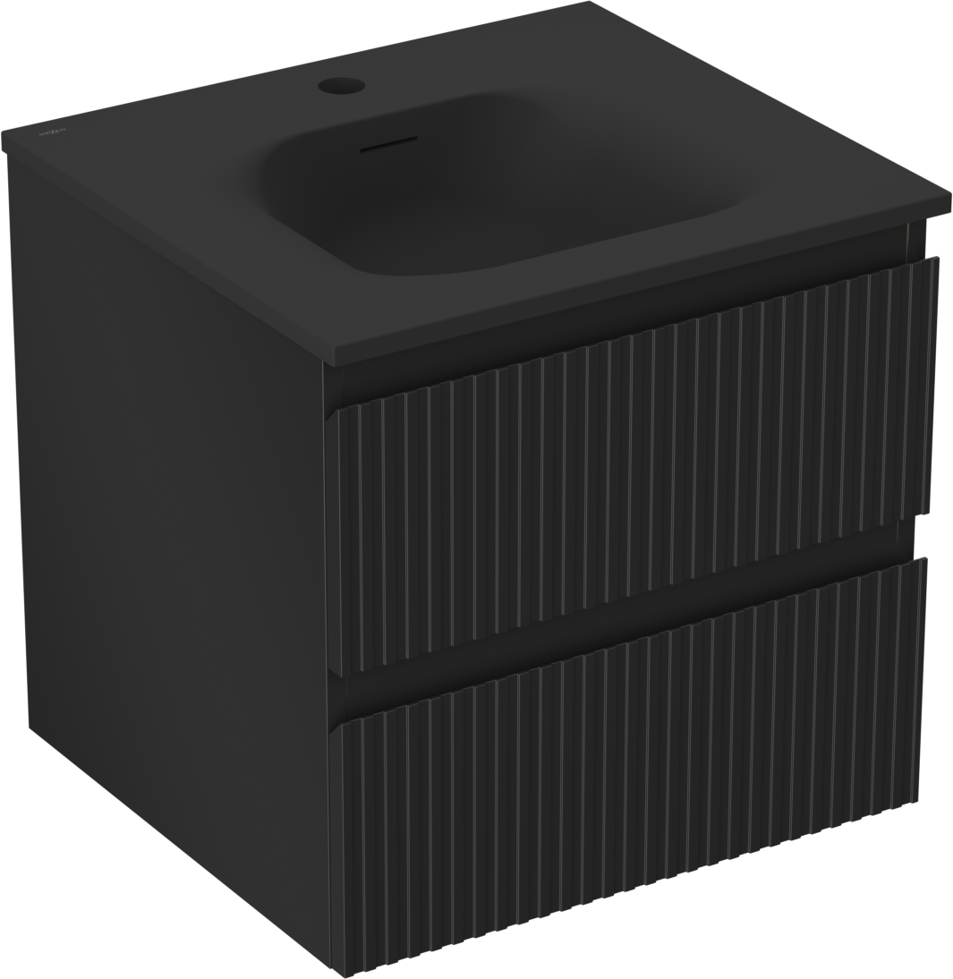 Mexen Rivel meuble de salle de bain 50 cm avec lavabo Vela, 2 tiroirs, rainuré, noir mat - 91A20-05047-2-BFF71-W23M71
