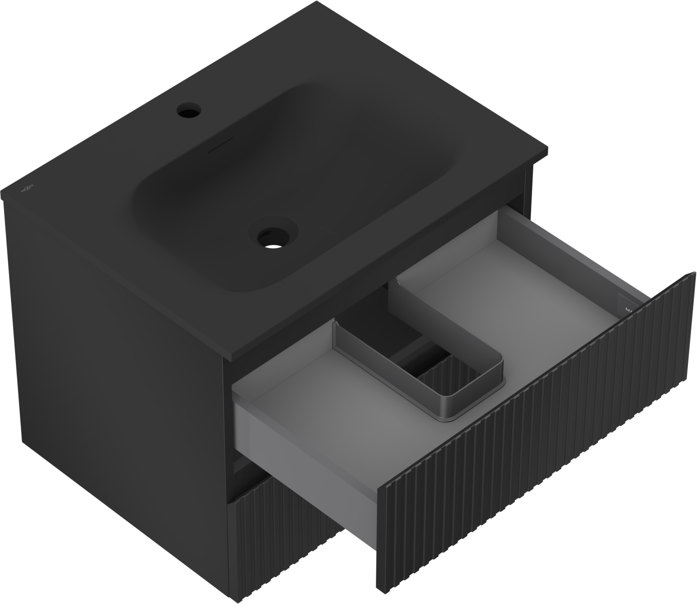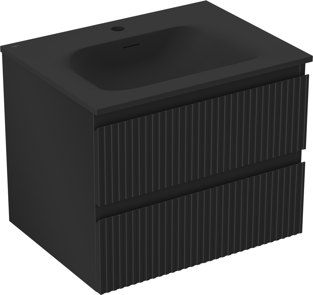 Mexen Rivel meuble de salle de bain 60 cm avec lavabo Vela, 2 tiroirs, rainuré, noir mat - 91A20-06047-2-BFF71-W23M71