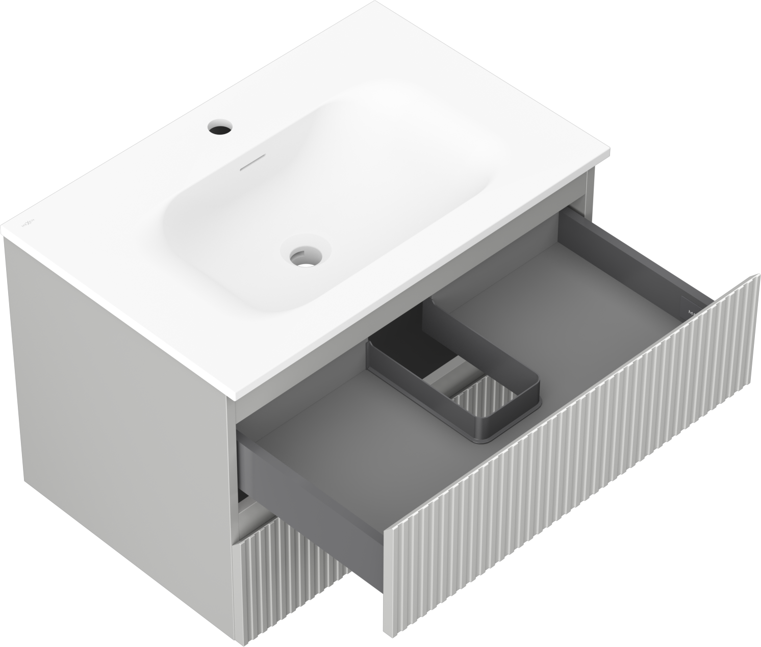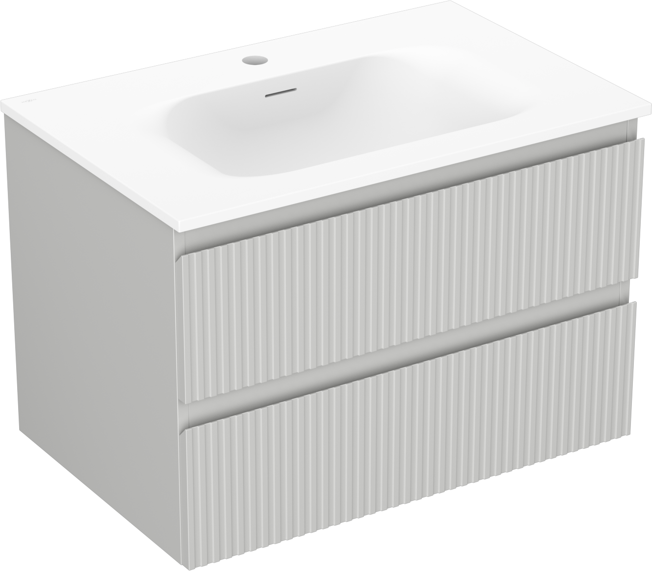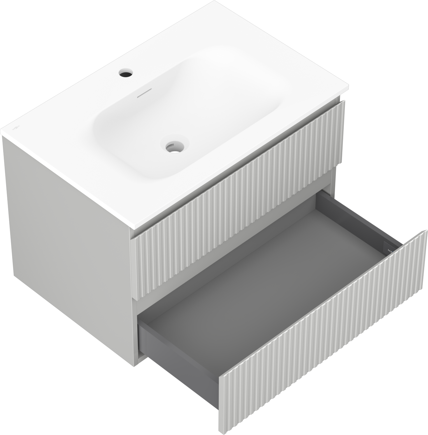 Mexen Rivel meuble de salle de bain 70 cm avec lavabo Vela, 2 tiroirs, rainuré, gris mat/blanc mat - 91A20-07047-2-BFF62-W23M01