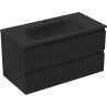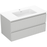 La découpe dans le tiroir est conçue de manière à accueillir le siphon, qui est nécessaire dans les installations de lavabo. Ainsi, le meuble peut être installé de manière pleinement fonctionnelle, sans devoir renoncer à l'espace du tiroir au profit de l'installation.