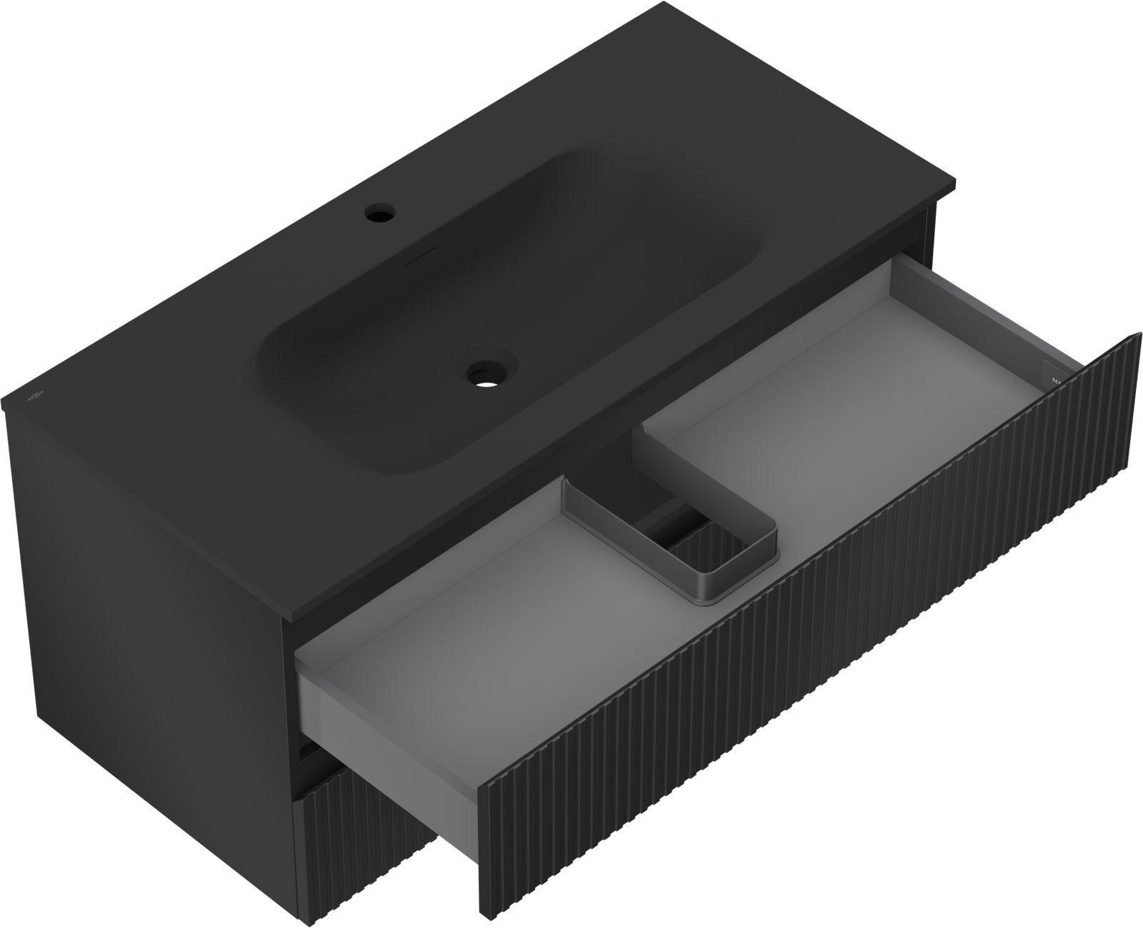 Mexen Rivel meuble de salle de bain 100 cm avec lavabo Vela, 2 tiroirs, rainuré, noir mat - 91A20-10047-2-BFF71-W23M71