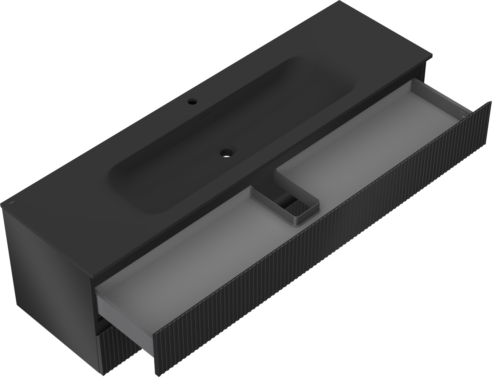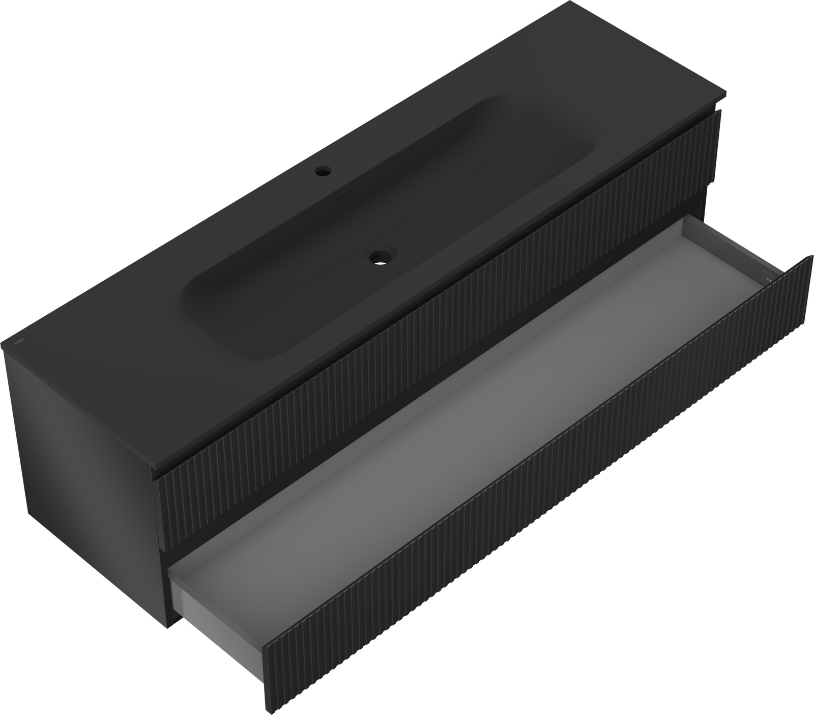 Mexen Rivel armoire de salle de bains 160 cm avec lavabo Vela, 2 tiroirs, rainurée, noir mat - 91A20-16047-2-BFF71-W23M71