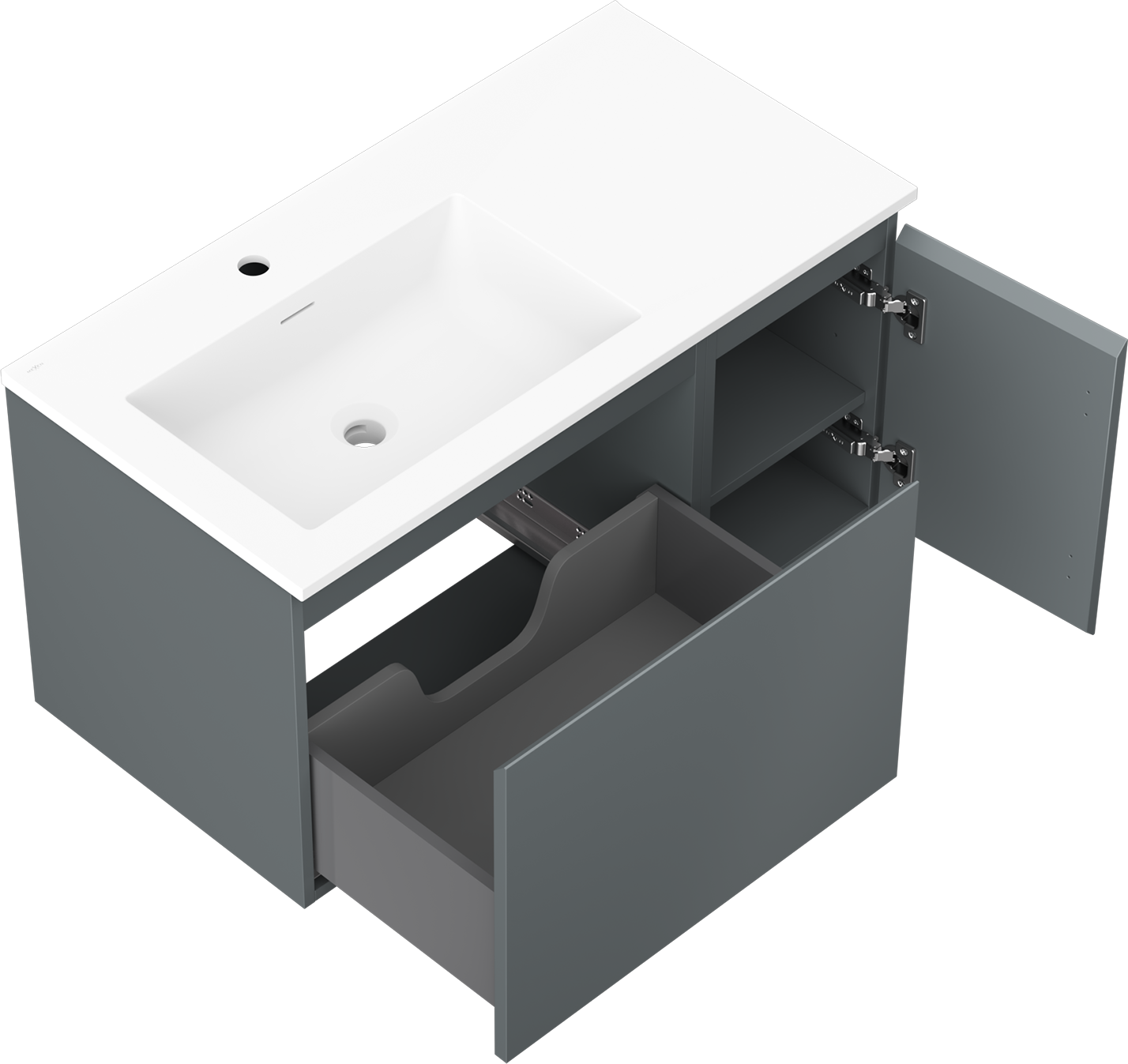 Mexen Orio armoire de salle de bain 90 cm avec lavabo Otis gauche, 1S, 1D, graphite mat/blanc mat - 91A13-09047-3-BBFF66-W18L01