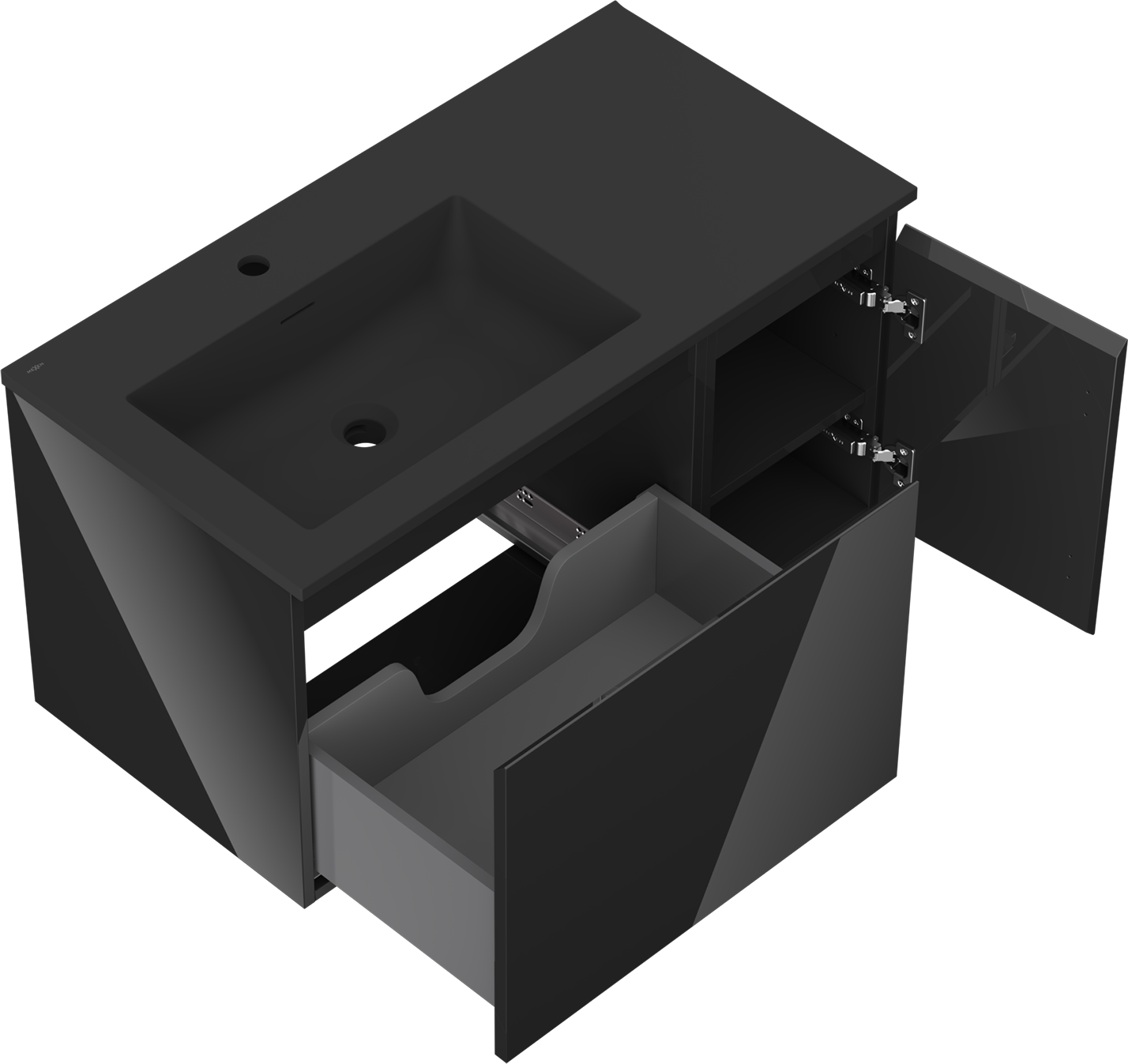 Mexen Orio meuble de salle de bain 90 cm avec lavabo Otis gauche, 1S, 1D, noir brillant/noir mat - 91A13-09047-3-BBFF70-W18L71