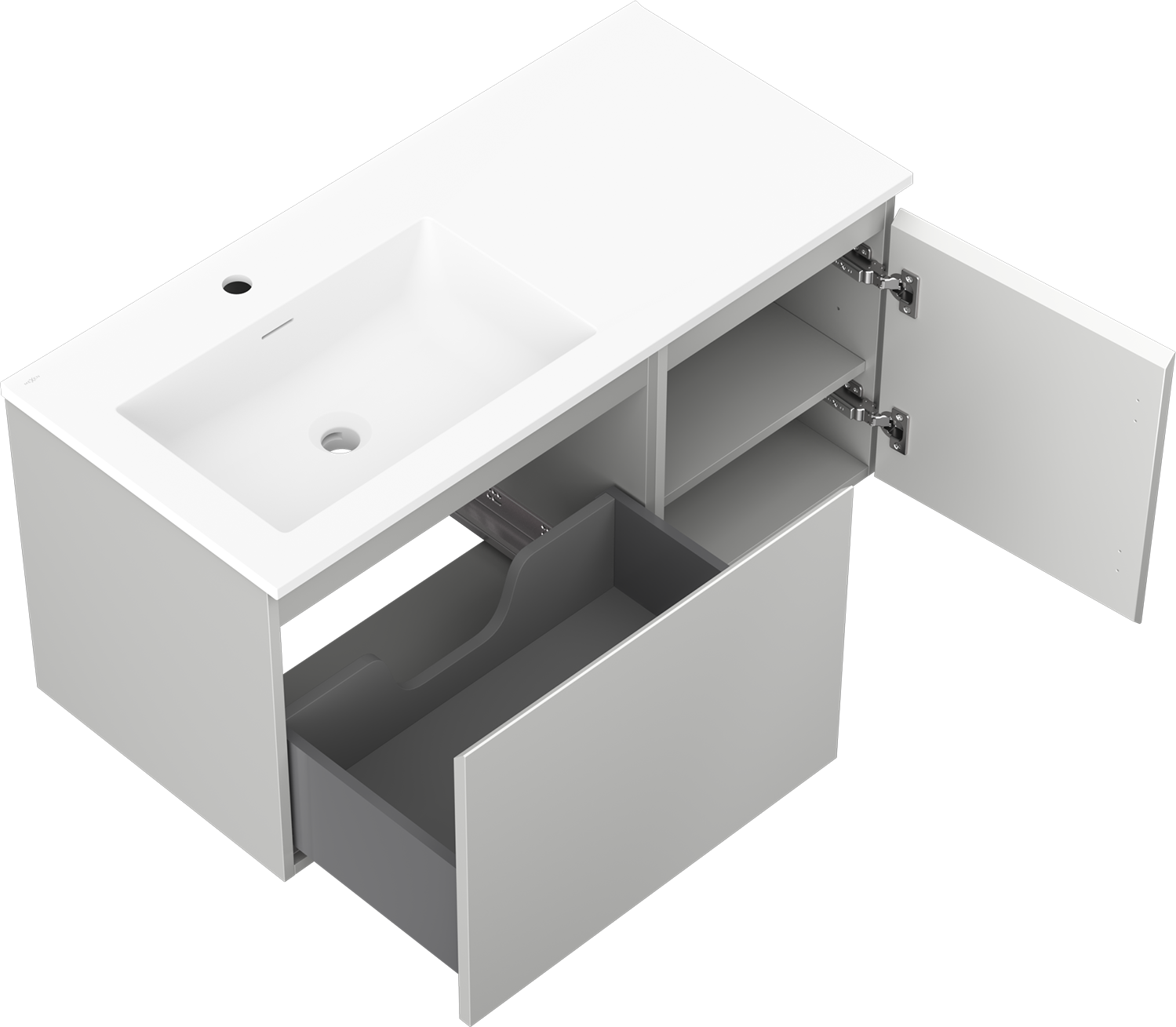 Mexen Orio armoire de salle de bain 100 cm avec lavabo Otis gauche, 1S, 1D, gris mat/blanc mat - 91A13-10047-3-BBFF62-W18L01