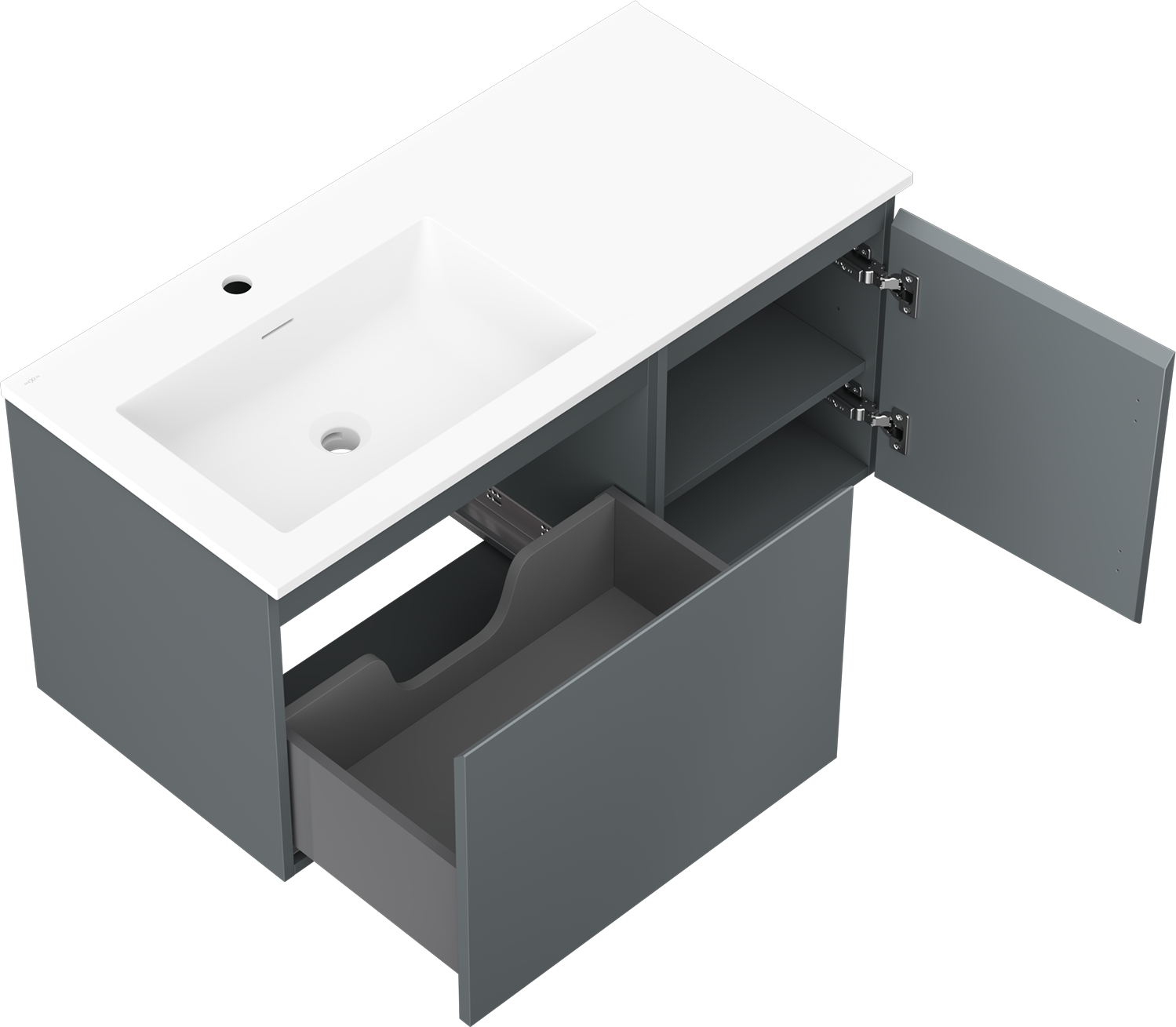 Mexen Orio meuble de salle de bain 100 cm avec lavabo Otis gauche, 1T, 1P, graphite mat/blanc mat - 91A13-10047-3-BBFF66-W18L01