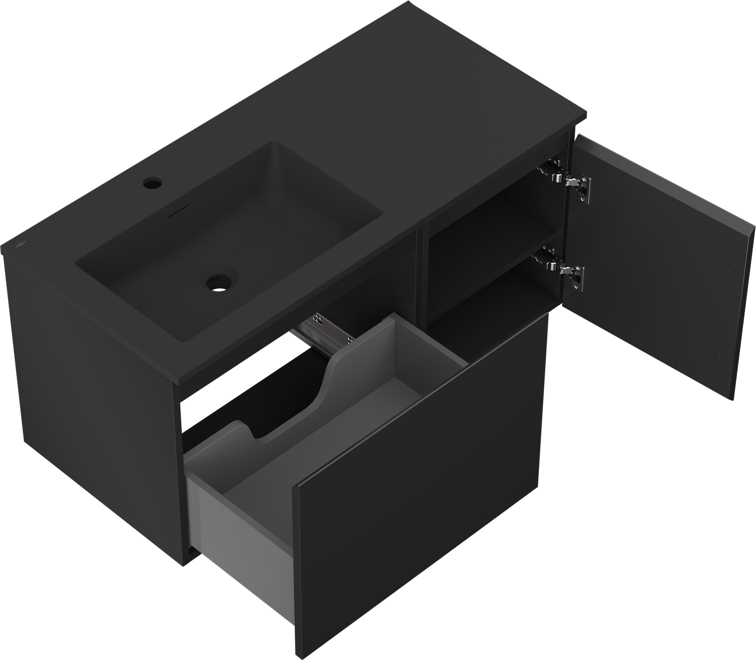 Mexen Orio meuble de salle de bain 100 cm avec lavabo Otis gauche, 1S, 1D, noir mat - 91A13-10047-3-BBFF71-W18L71