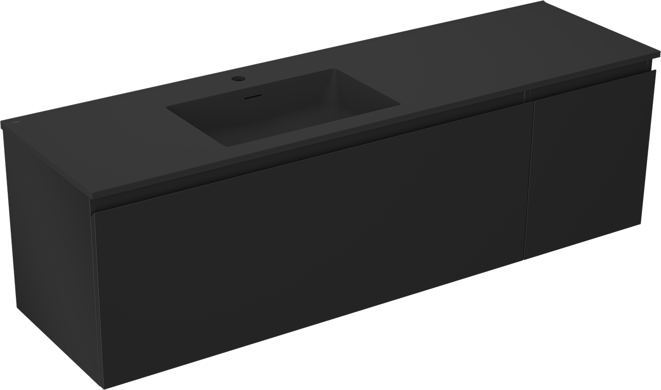 Mexen Orio meuble de salle de bain 160 cm avec lavabo Otis gauche, 1S, 1D, noir mat - 91A13-16047-3-BBFF71-W18L71