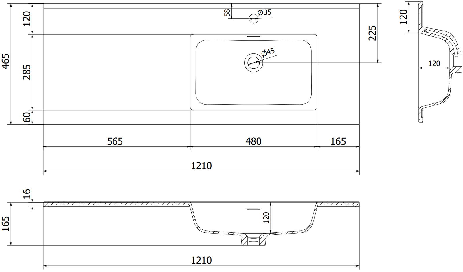 Ouverture pour robinet: Oui
