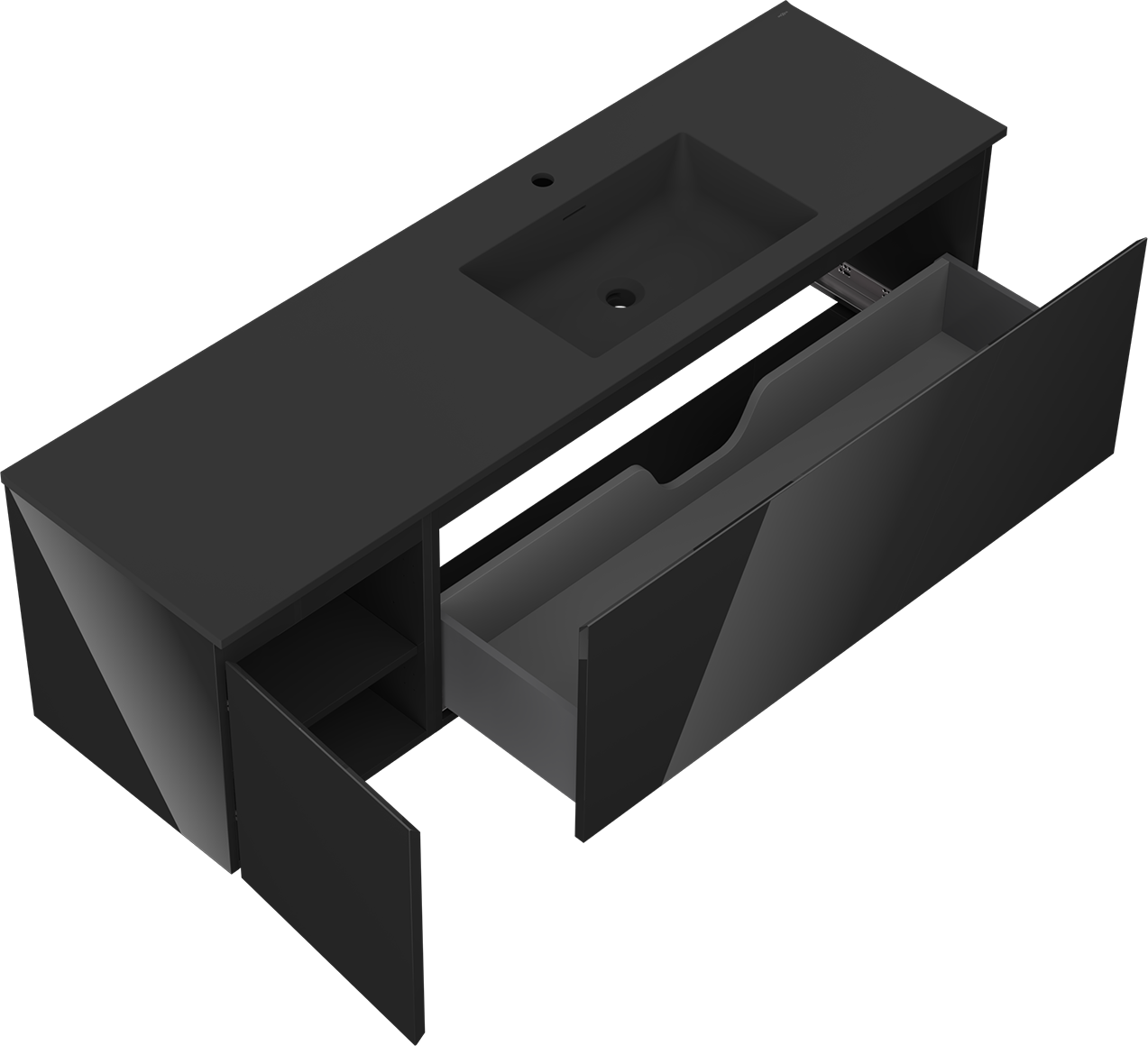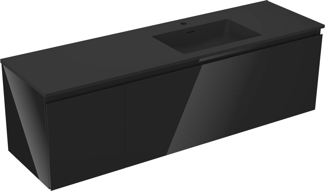 Mexen Orio meuble de salle de bain 160 cm avec lavabo Otis droit, 1T, 1P, noir brillant/noir mat - 91A13-16047-3-BBFF70-W18P71