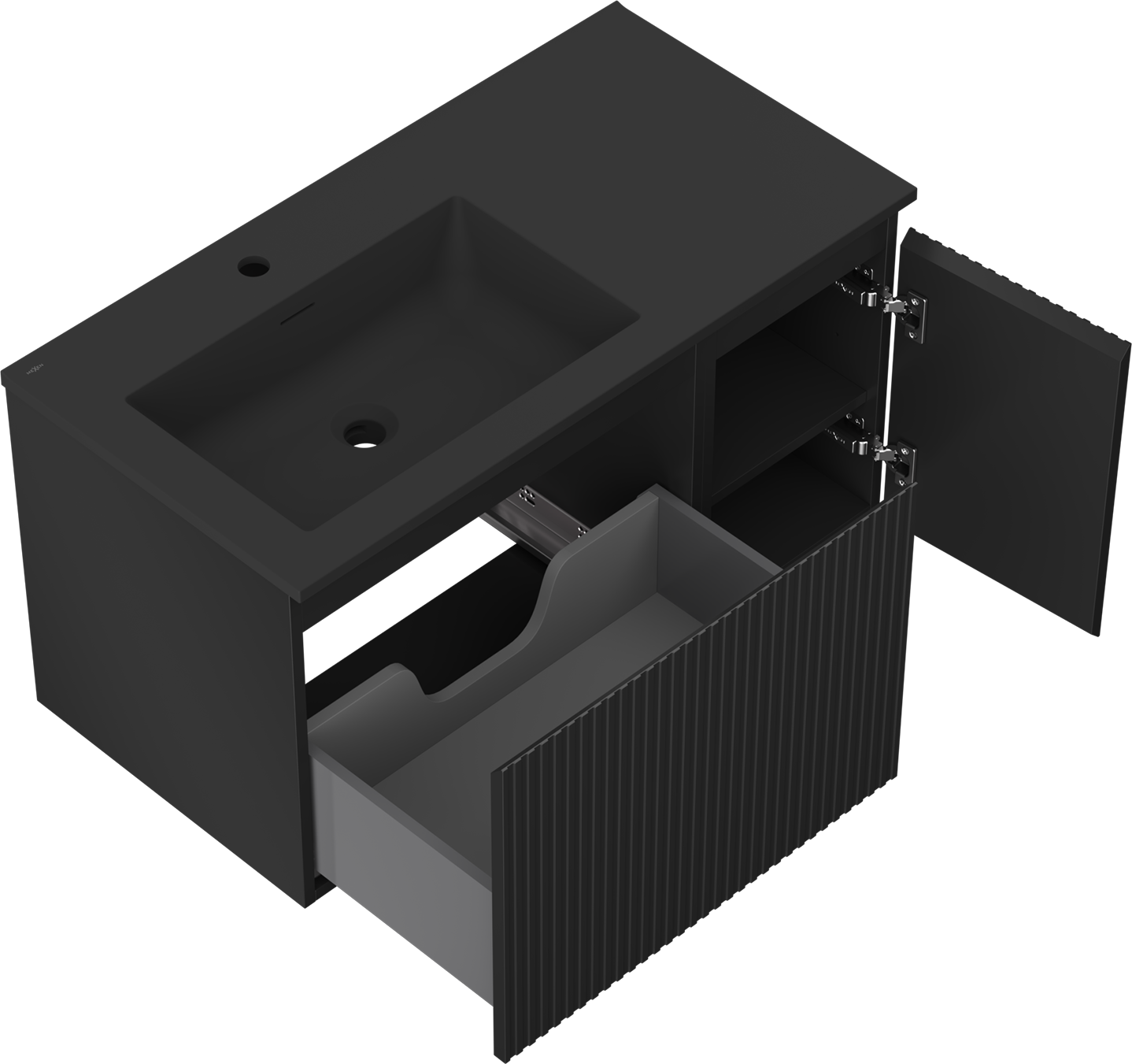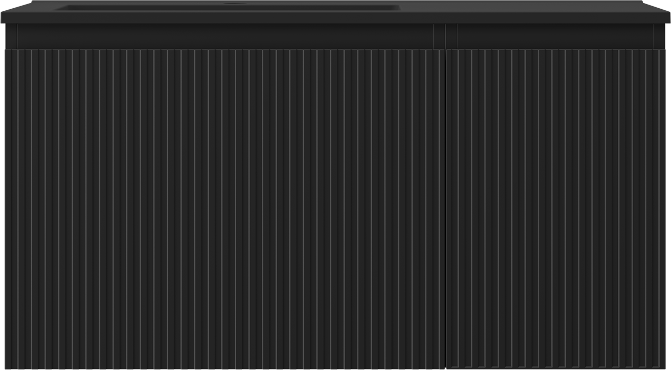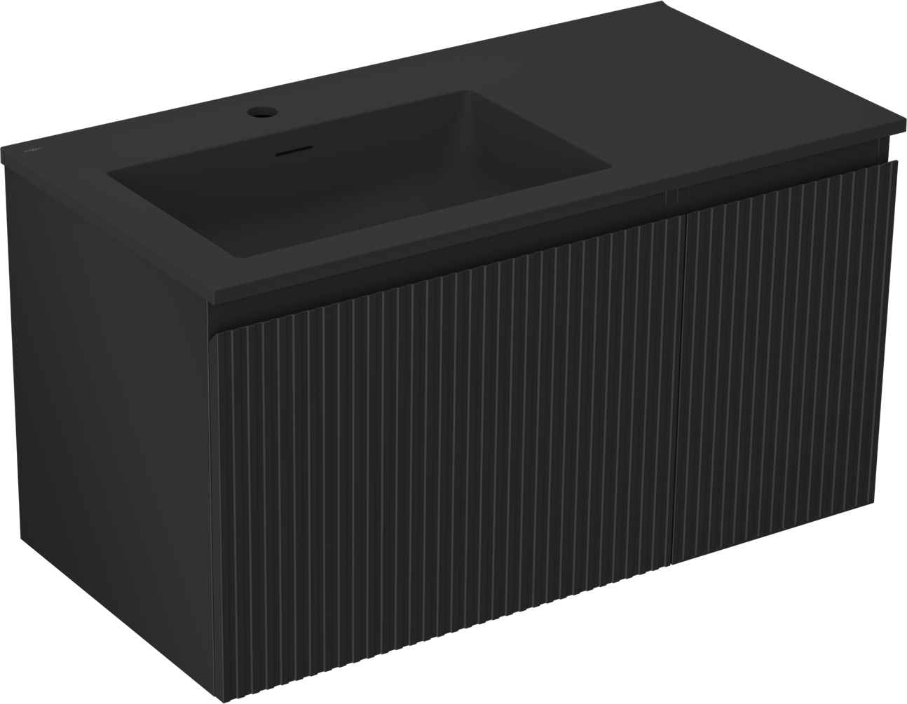 Mexen Rivel armoire de salle de bains 90 cm avec lavabo Otis à gauche, 1S, 1D, rainurée, noir mat - 91A23-09047-3-BBFF71-W18L71